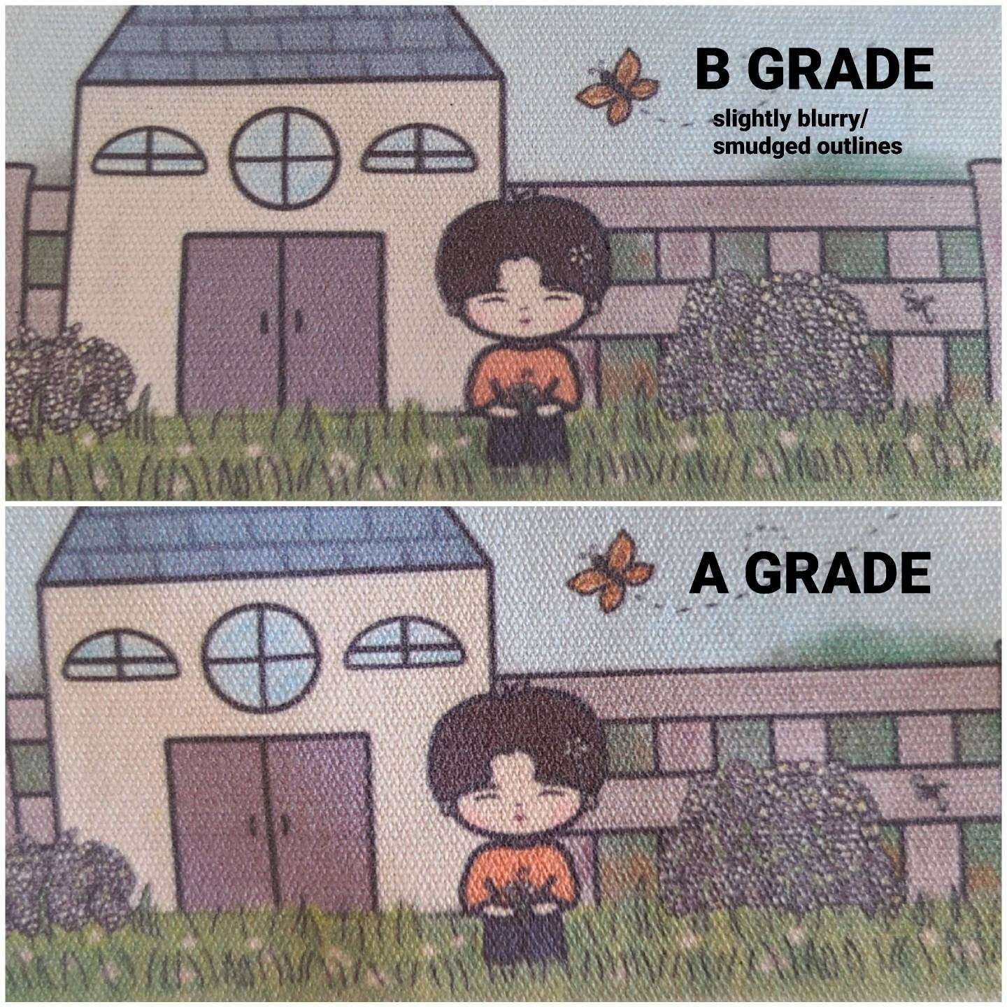 - B Grade: some imperfections to print/fabric, for example, an ink spot on the fabric or slightly blurry image (see last 2 photos)