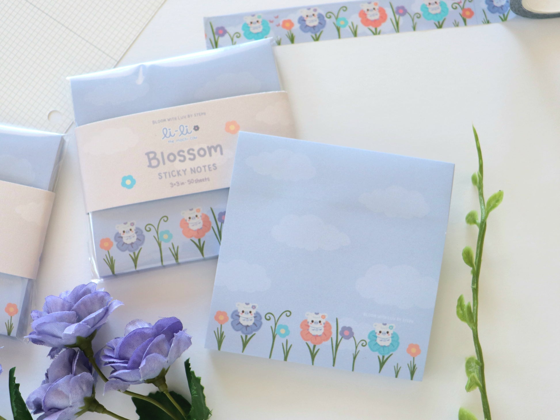 Sticky note pad features original illustrations by Bloom With Luv. Do not copy or reproduce.