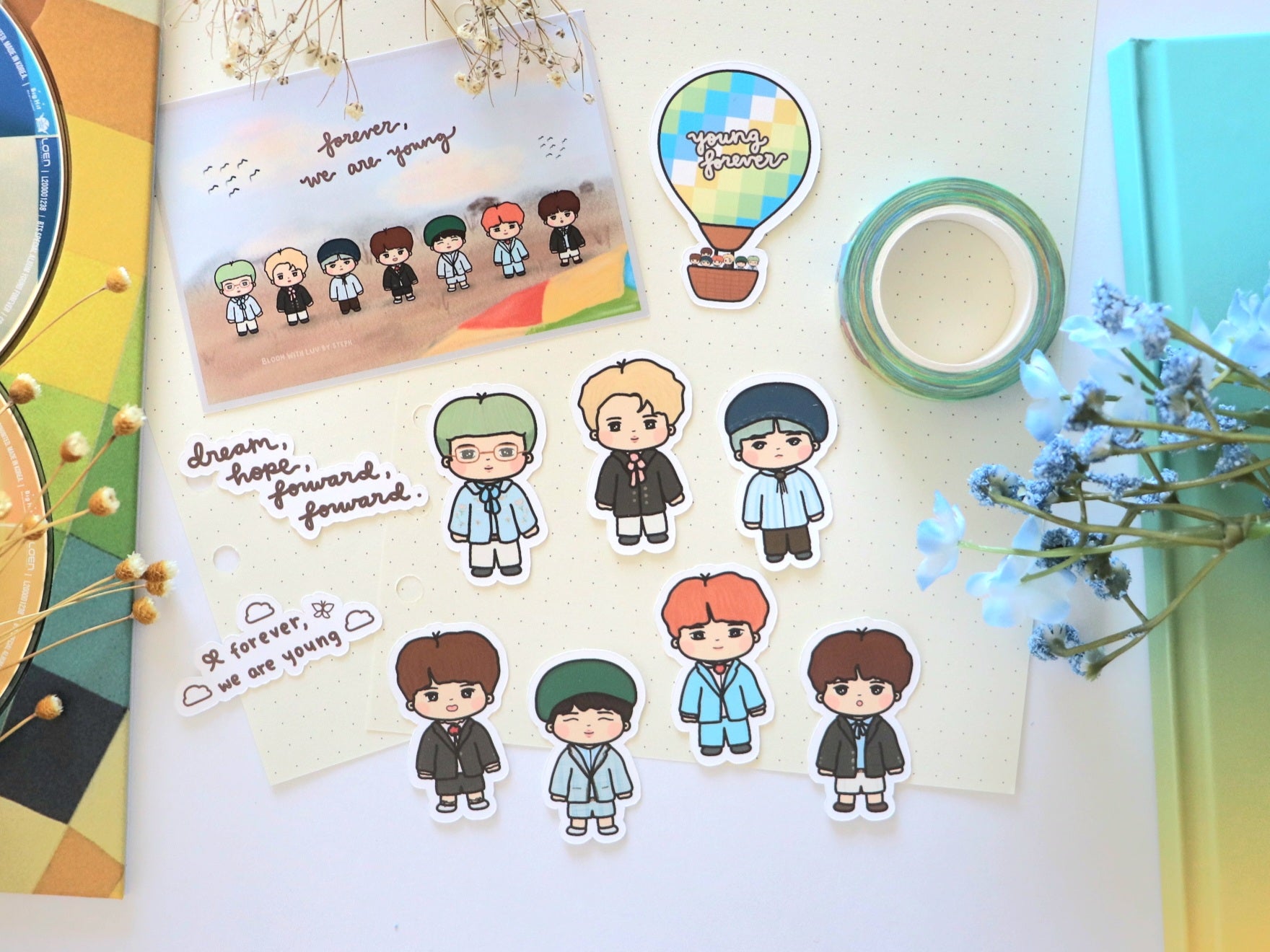 A throwback to Bangtan's Young Forever era. These stickers are inspired by the concept photos, outfits, and lyrics.