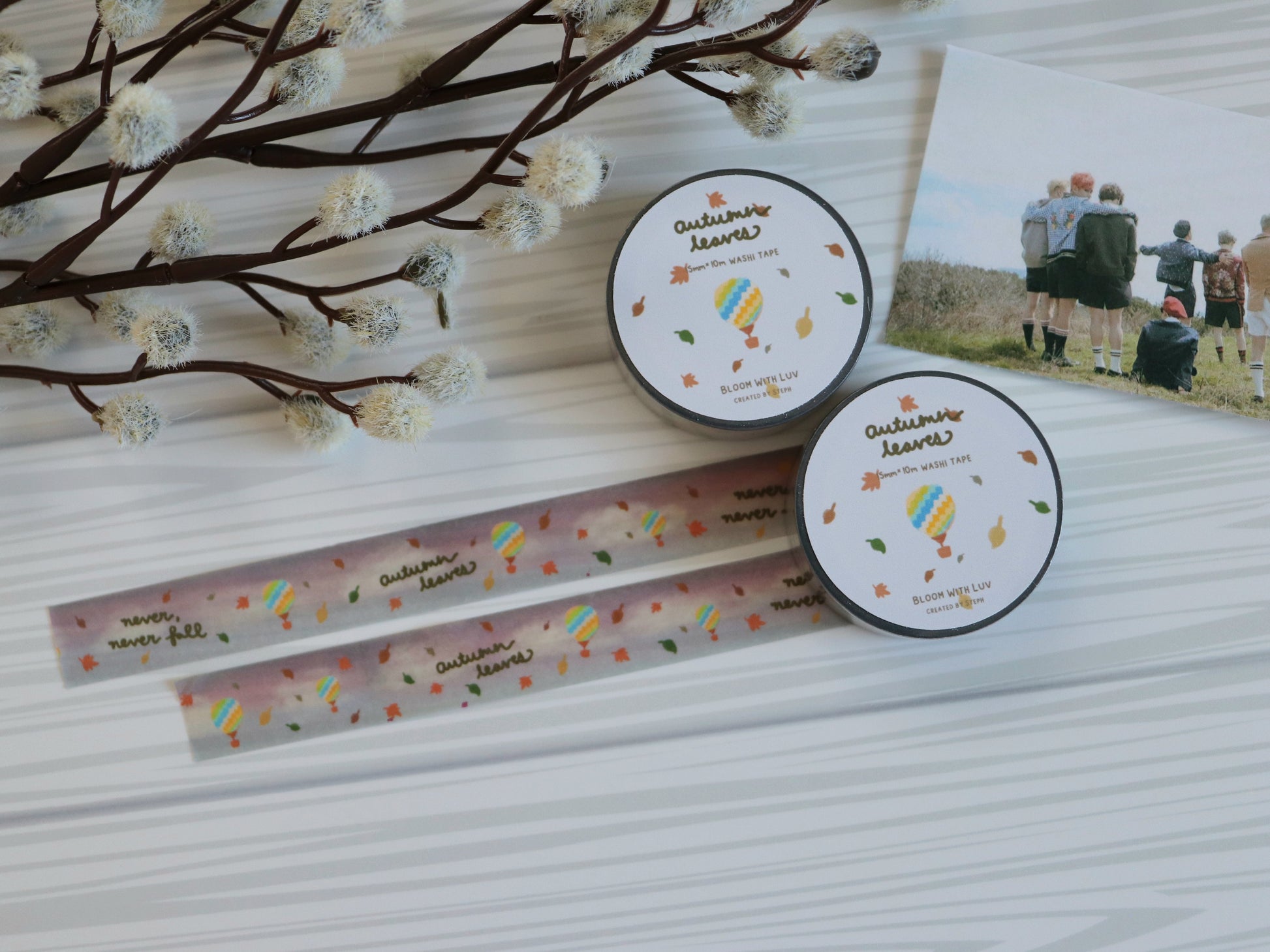 Bringing together the fall vibes and the HYYH/Young Forever era 💜 Features a pastel gradient sky, lyrics from Autumn Leaves, and Young Forever hot air balloons.