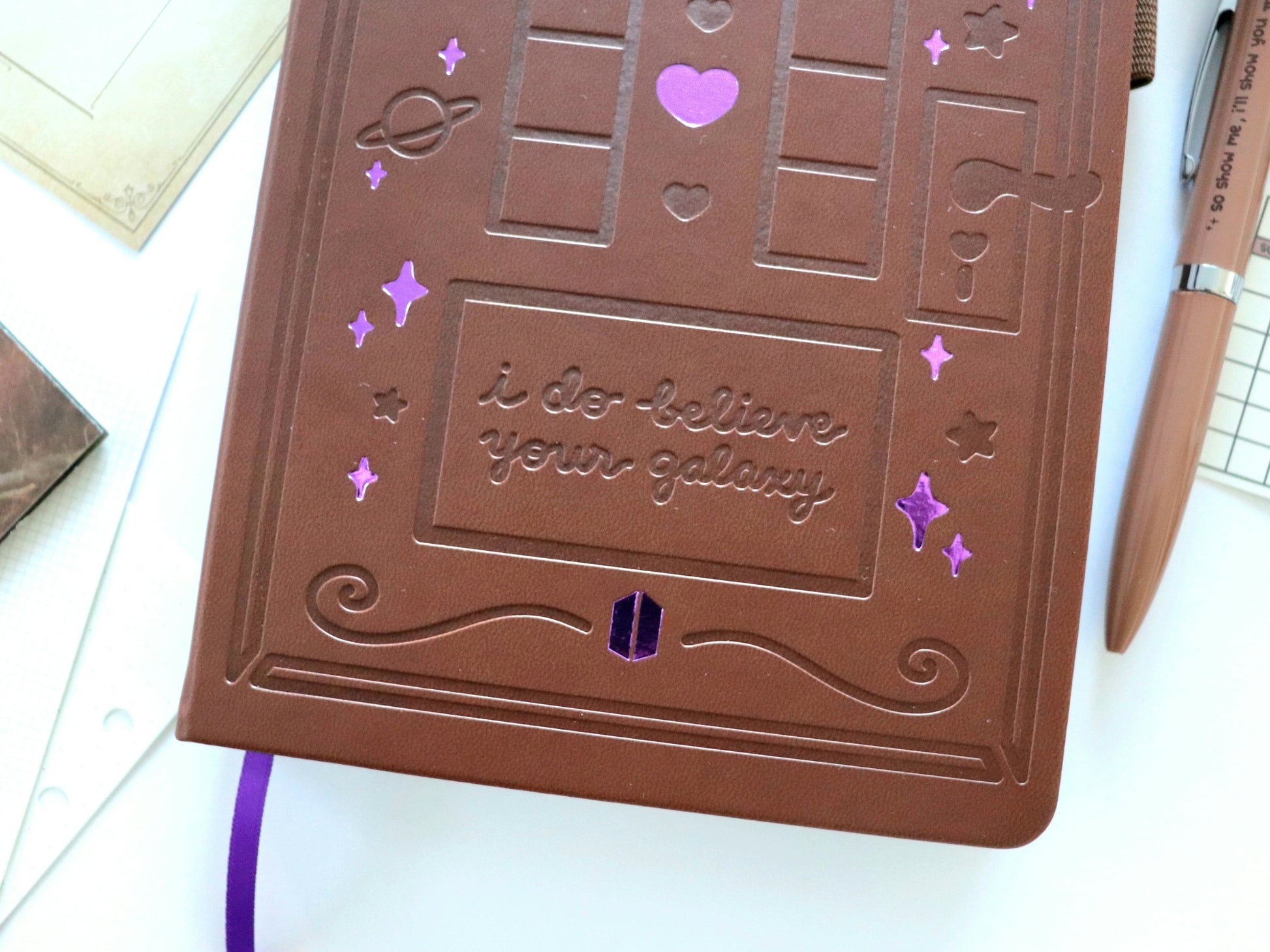 A premium quality journal notebook and pen set inspired by Magic Shop. This journal is designed to resemble a door and features magical embossed purple foil details on the cover and spine. This piece is created to be a place where you can feel comfort in writing about anything and everything.