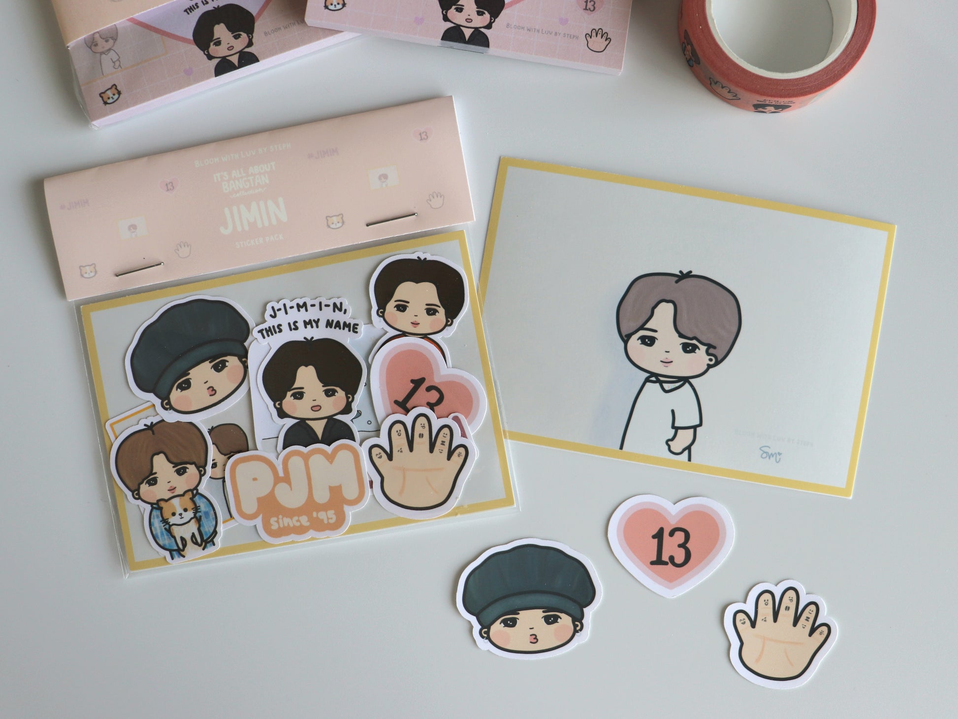 This Jimin sticker pack is part of the "It's All About Bangtan Collection", which was created with inspiration from some of the many little things that we admire and remind us about each of the members 💜