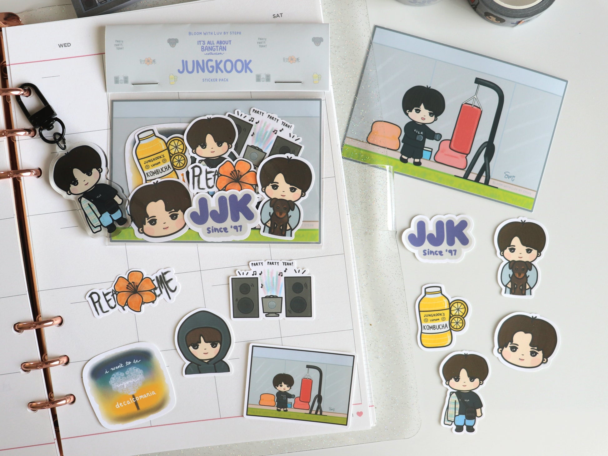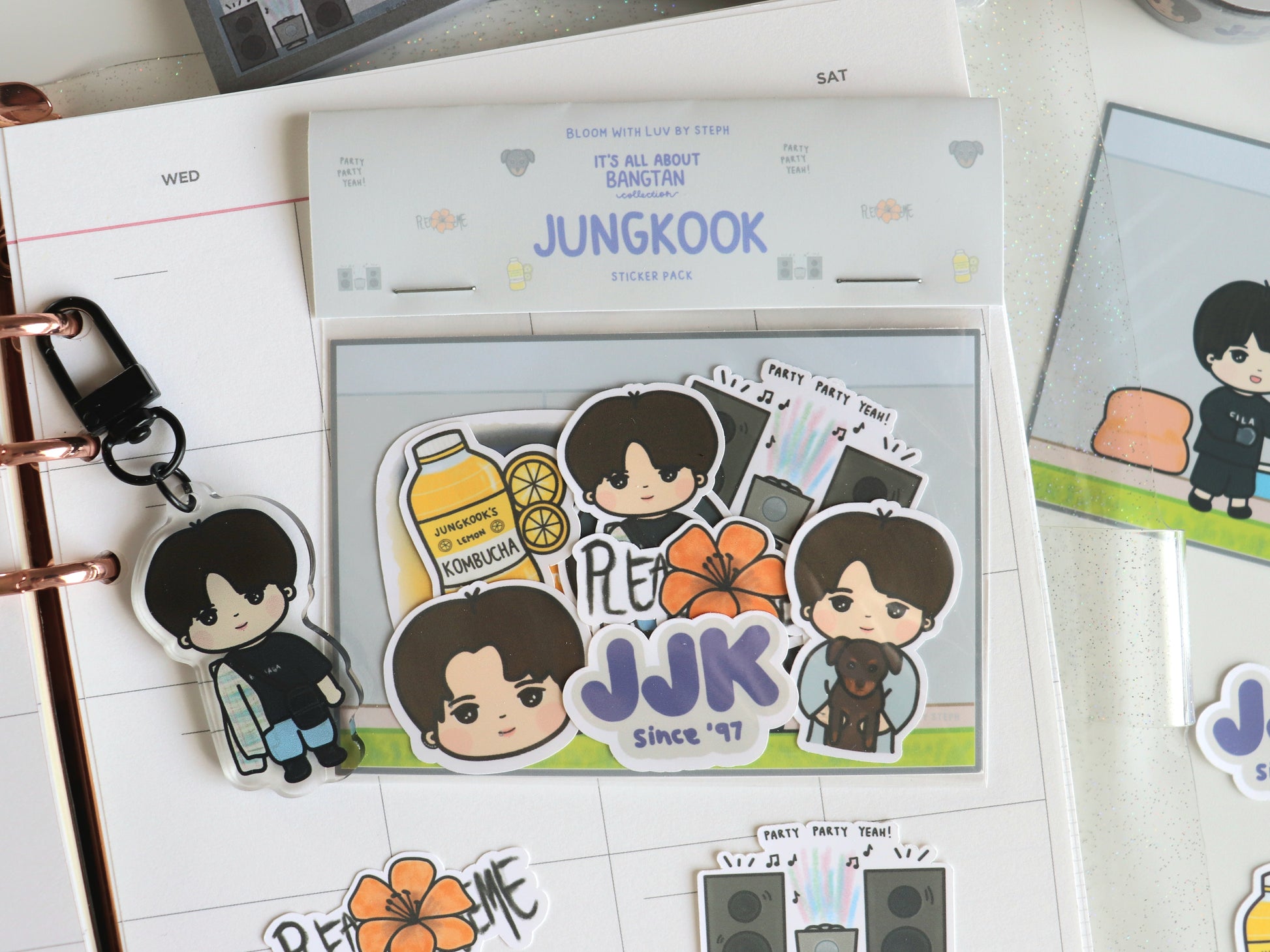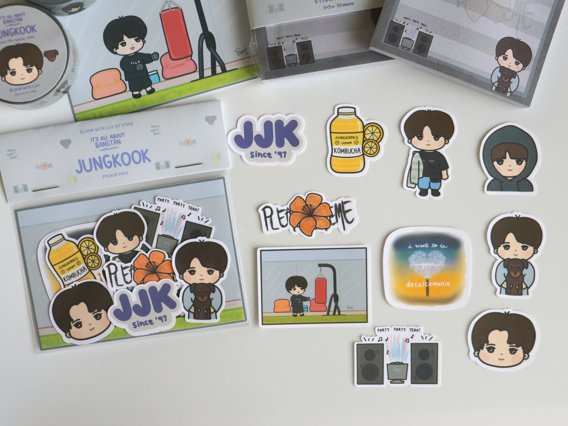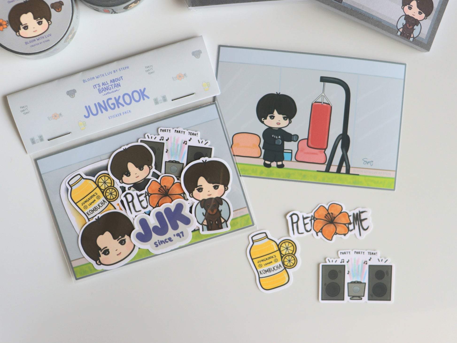 This Jungkook sticker pack is part of the "It's All About Bangtan Collection", which was created with inspiration from some of the many little things that we admire and remind us about each of the members 💜