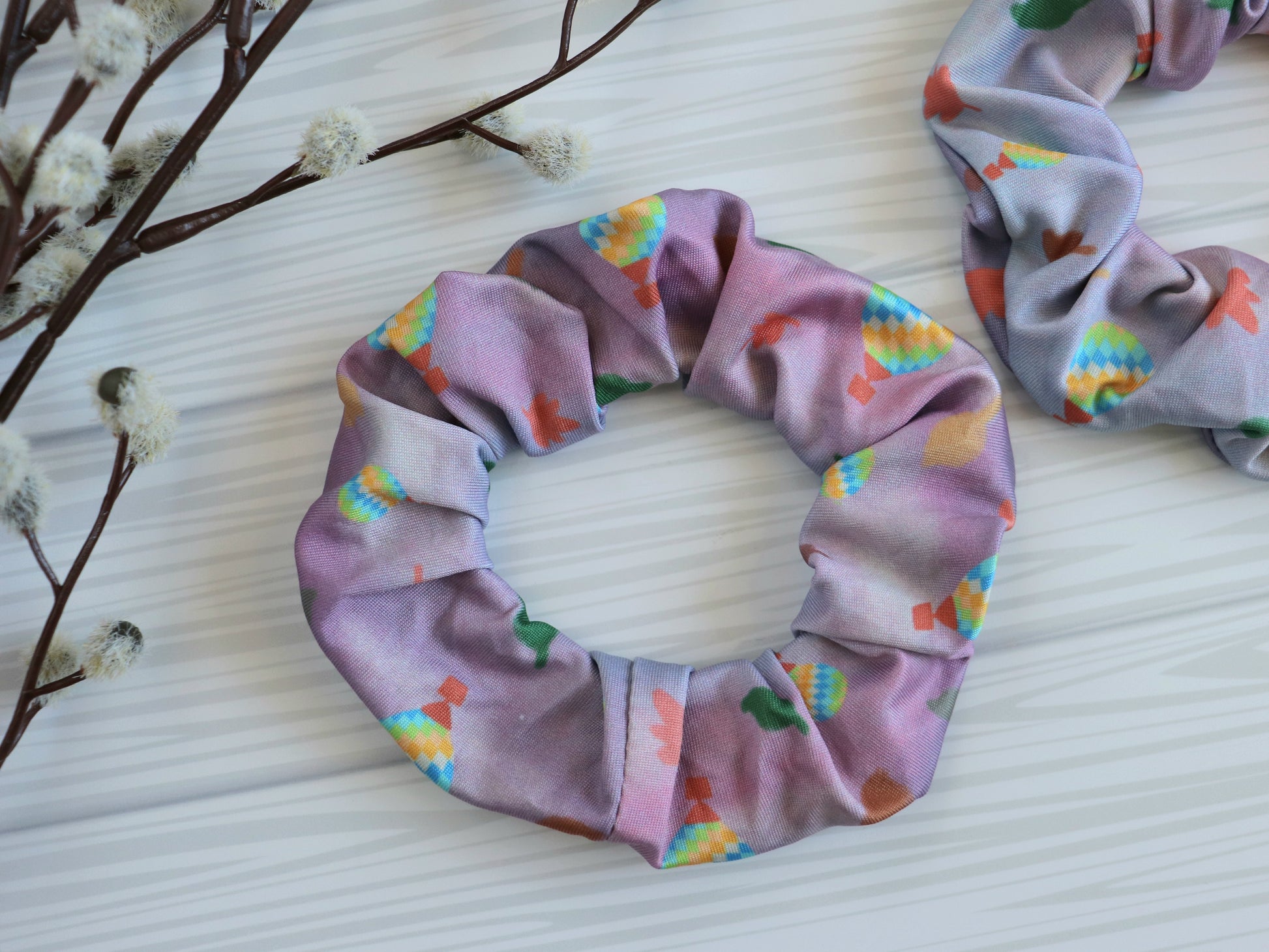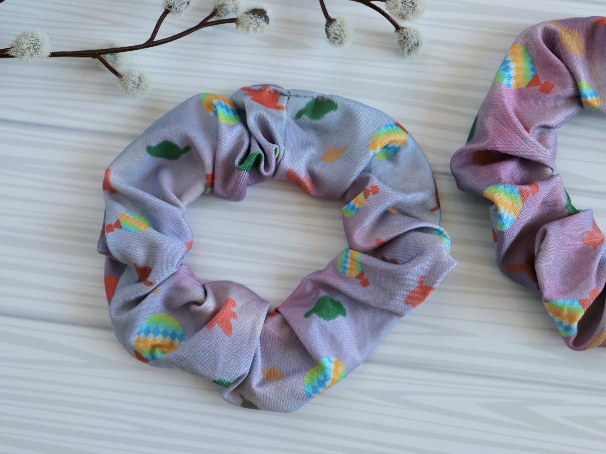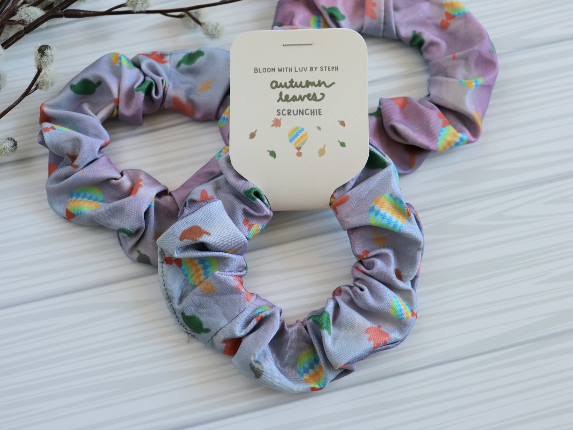 Bringing together the fall vibes and the HYYH/Young Forever era 💜 Soft polyester scrunchie inspired by Autumn Leaves, featuring a pastel gradient sky with autumn foliage and Young Forever hot air balloons.