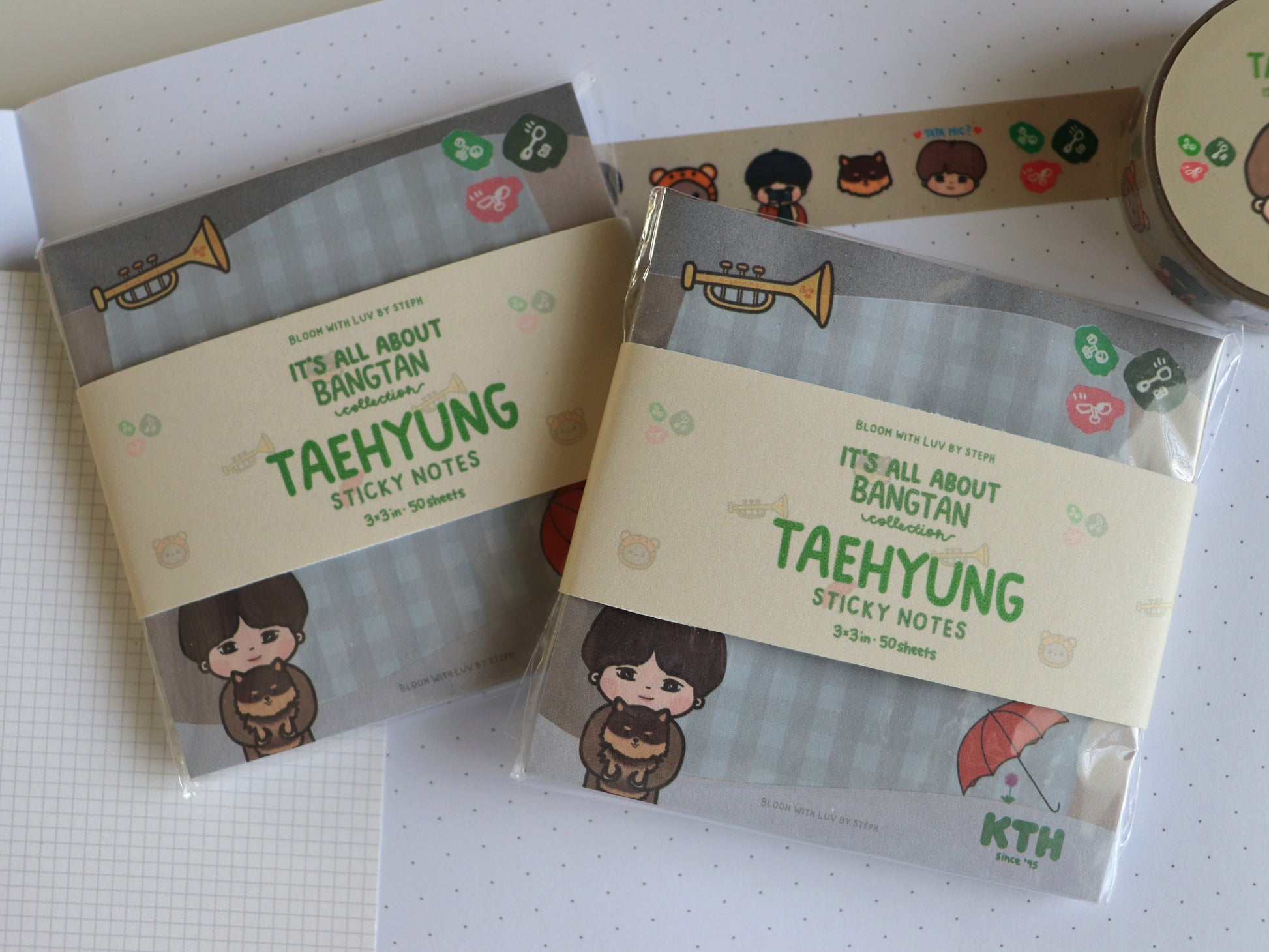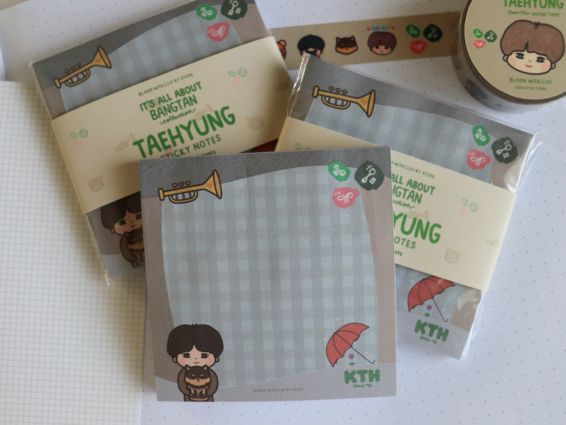 This Taehyung sticky note pad is part of the "It's All About Bangtan Collection", which was created with inspiration from some of the many little things that we admire and remind us about each of the members 💜