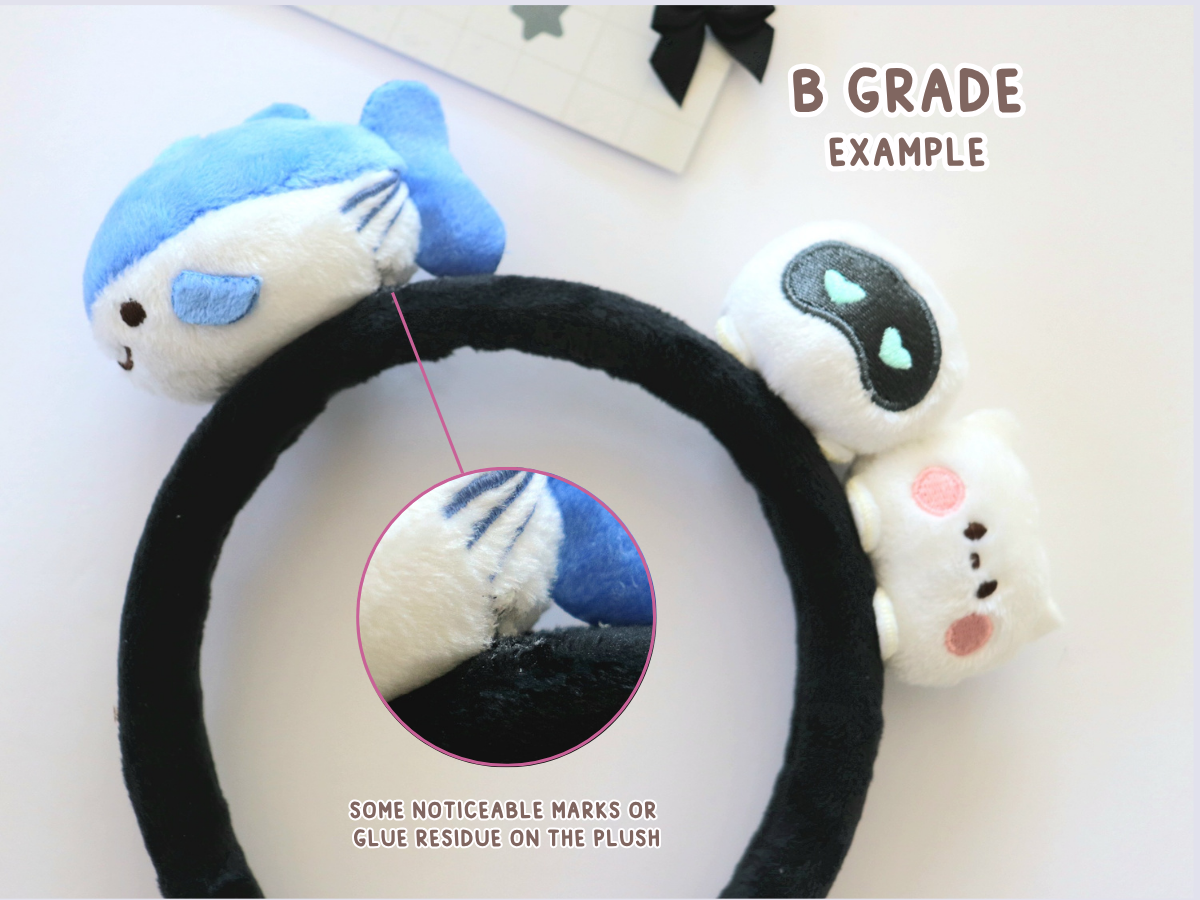 - B Grade: some noticeable imperfections, such as glue residue or marks on the plush (see B Grade photo example)