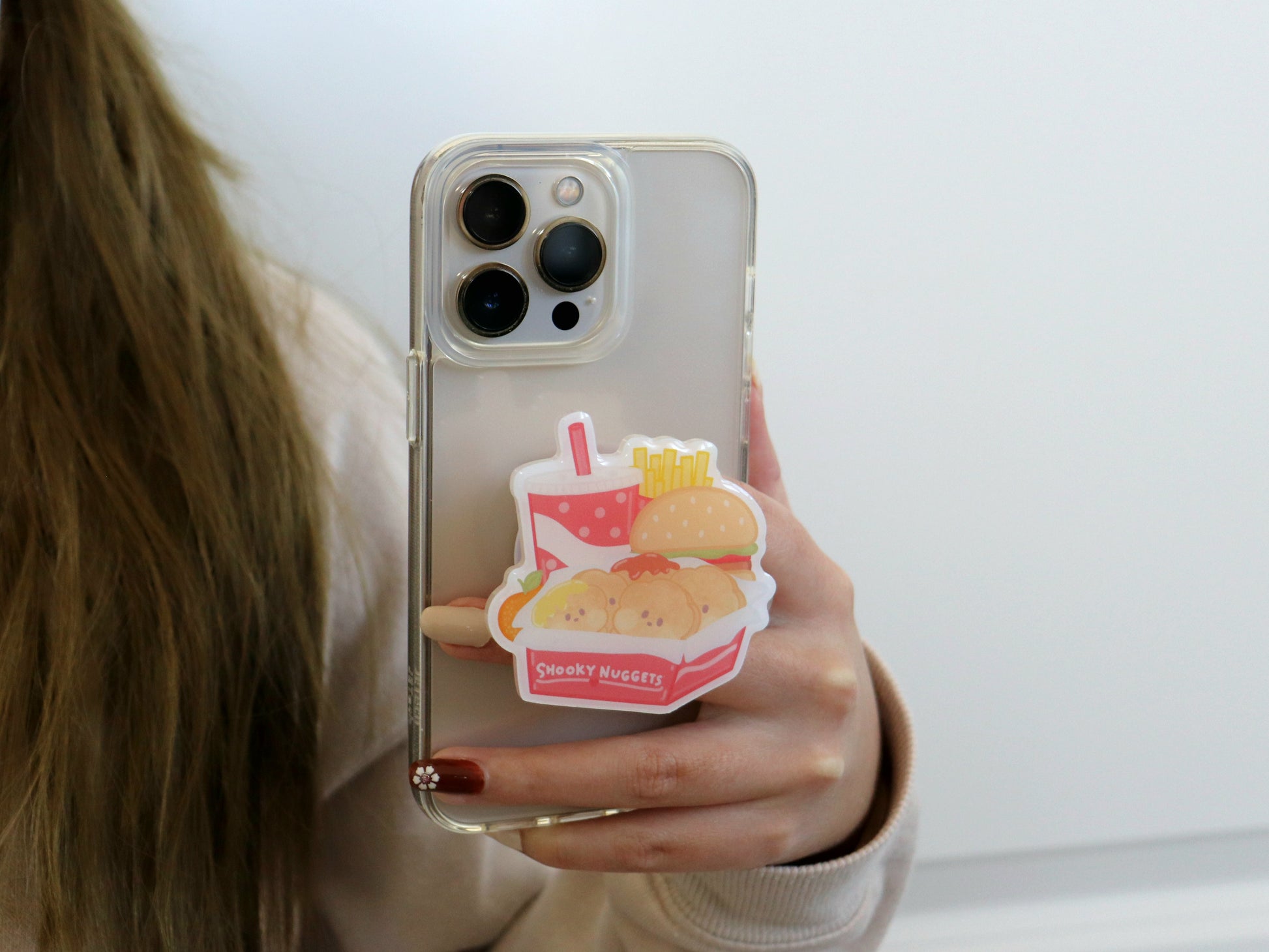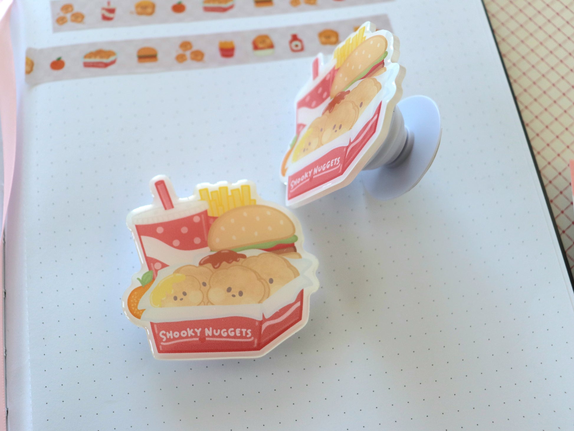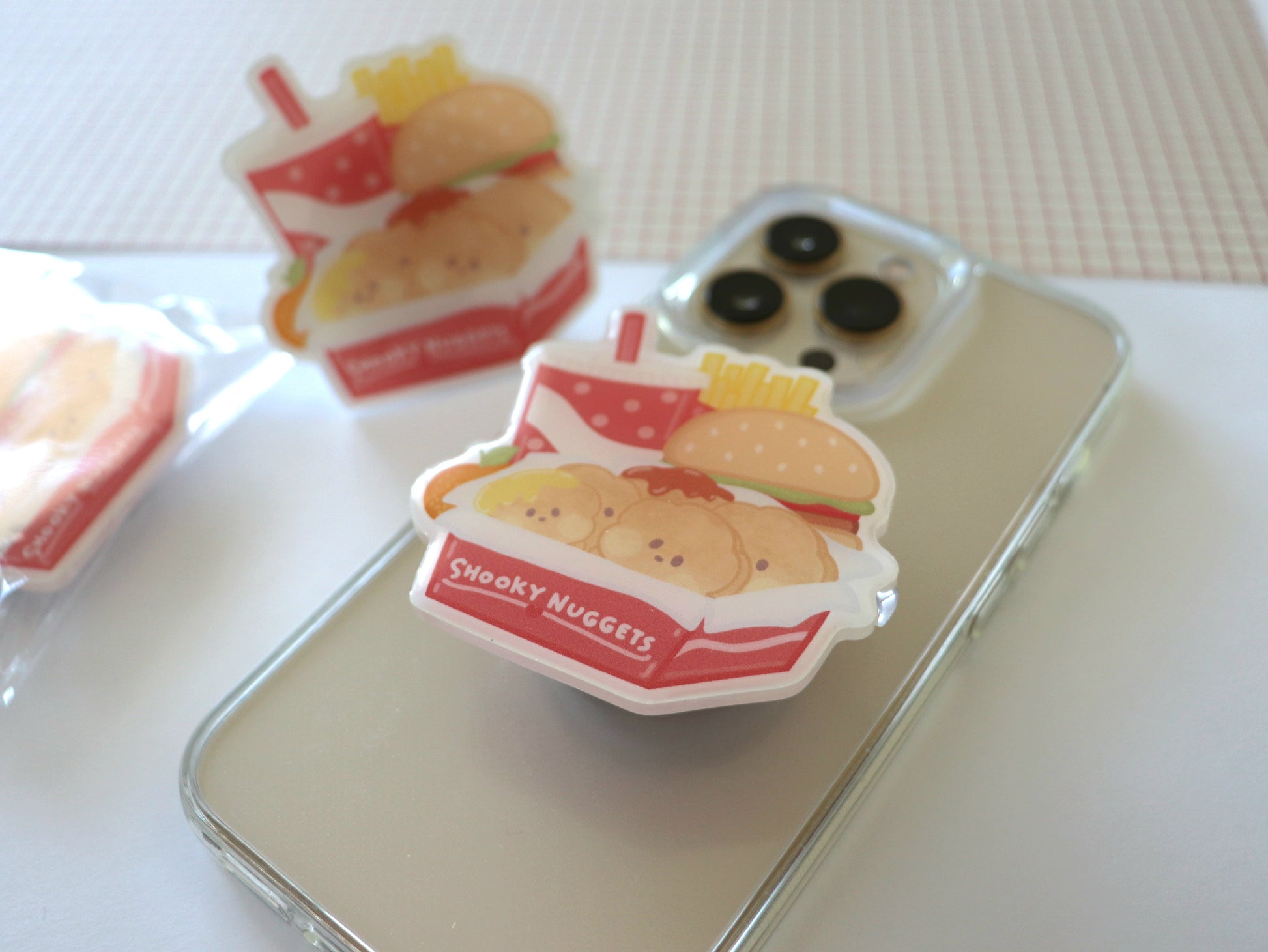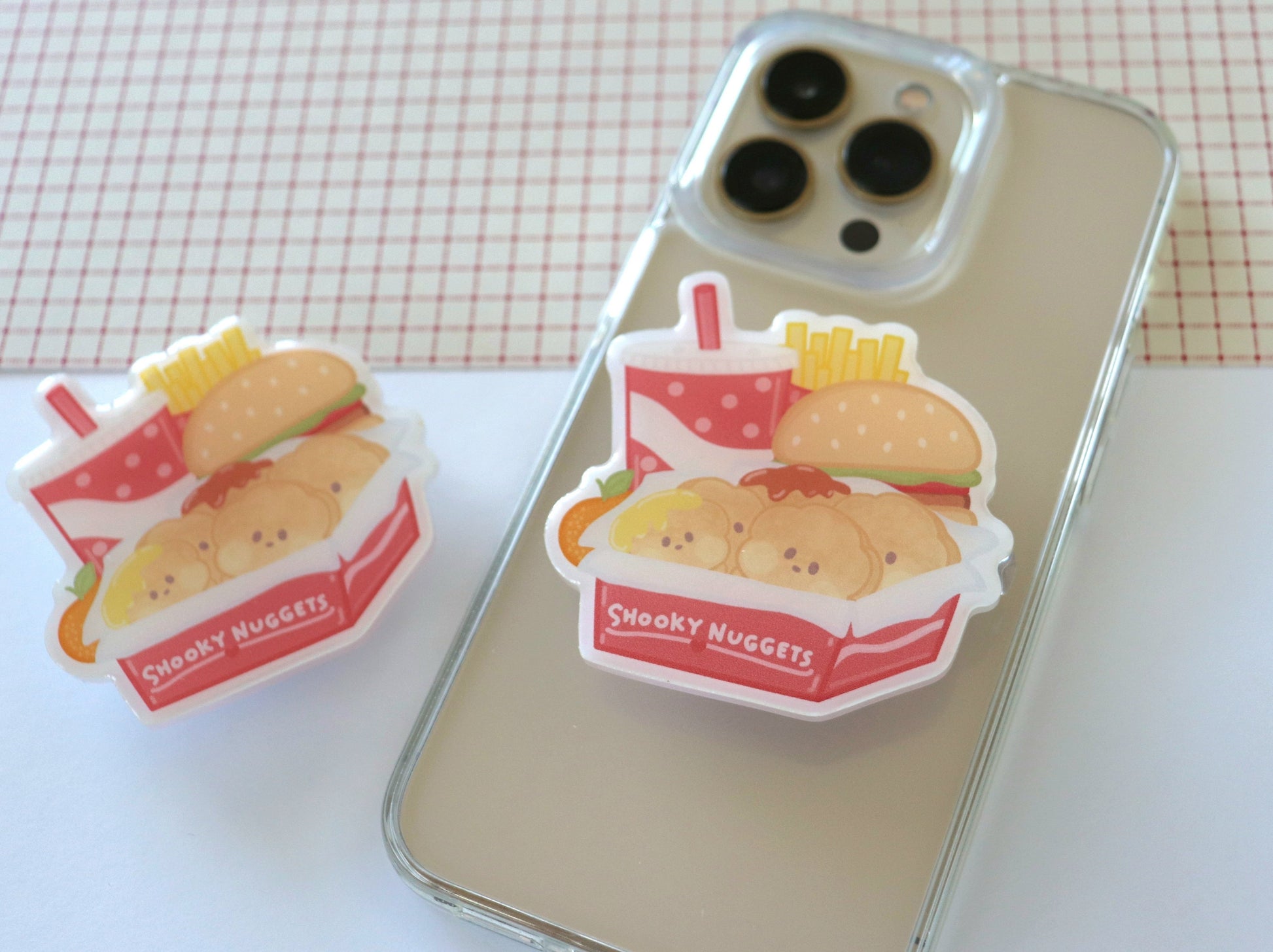 Shooky in the form of chicken nuggets! This acrylic phone grip is for all the foodies and Shooky lovers. Perfect to add a pop of cuteness to your phone case.