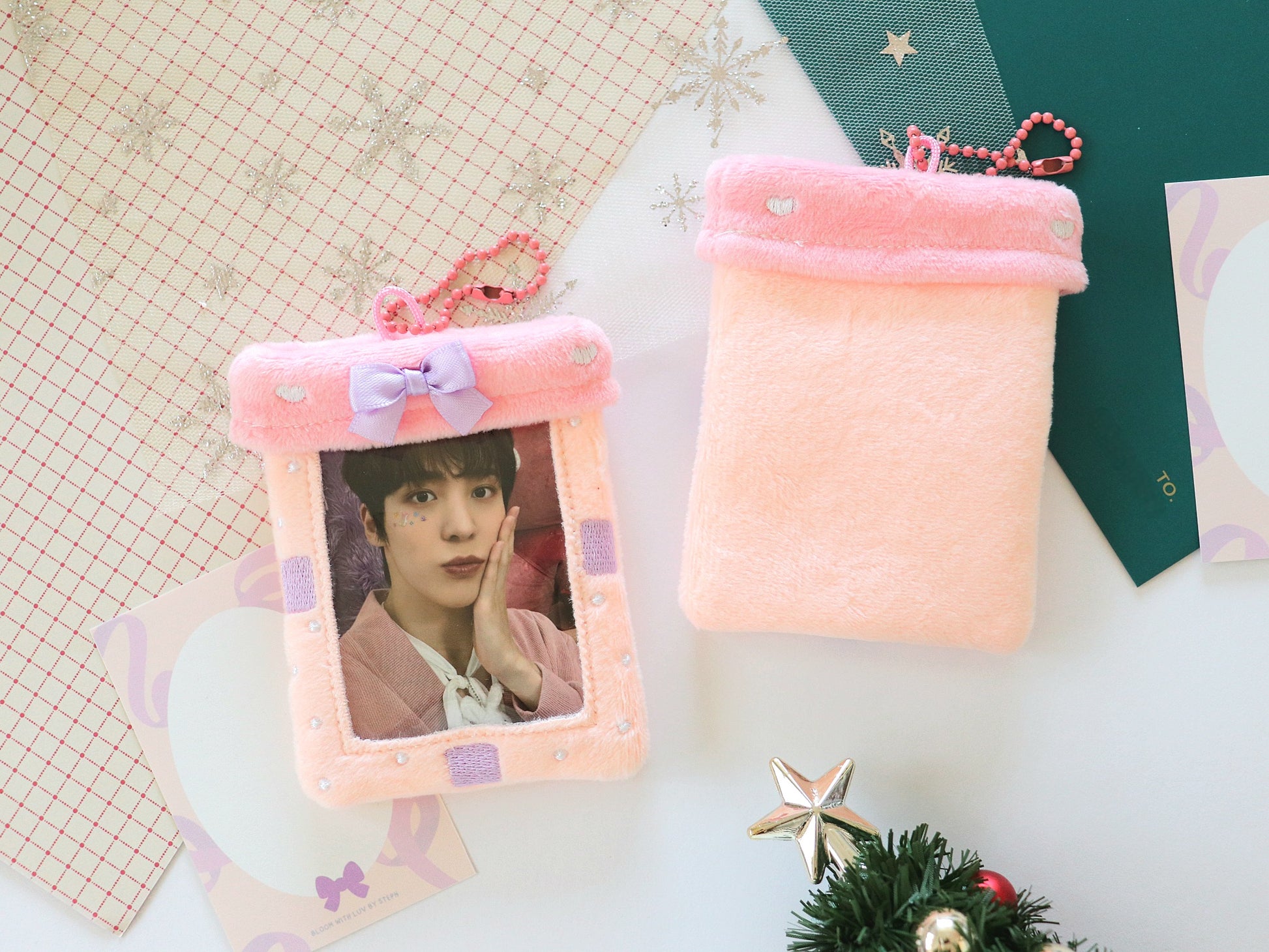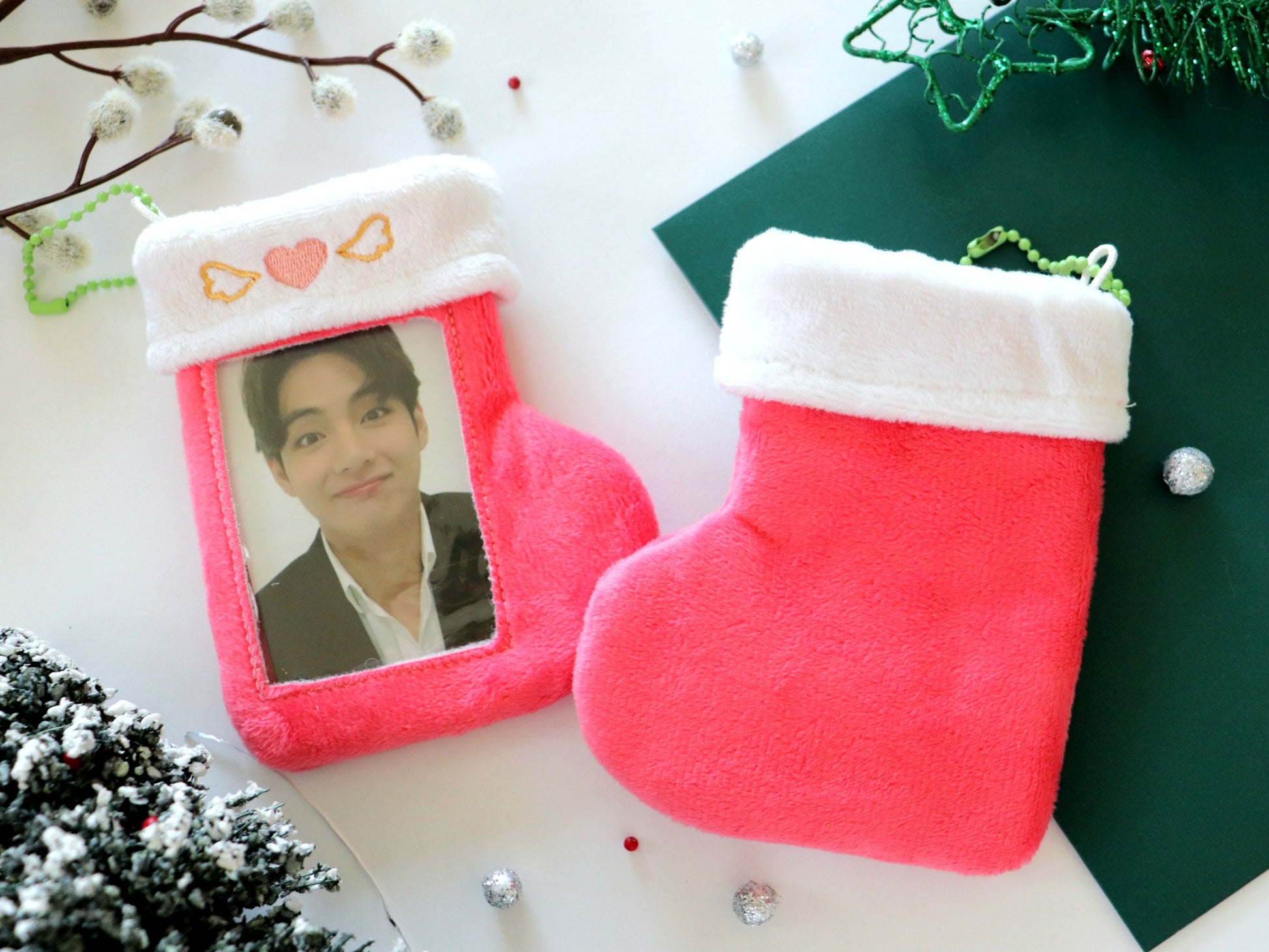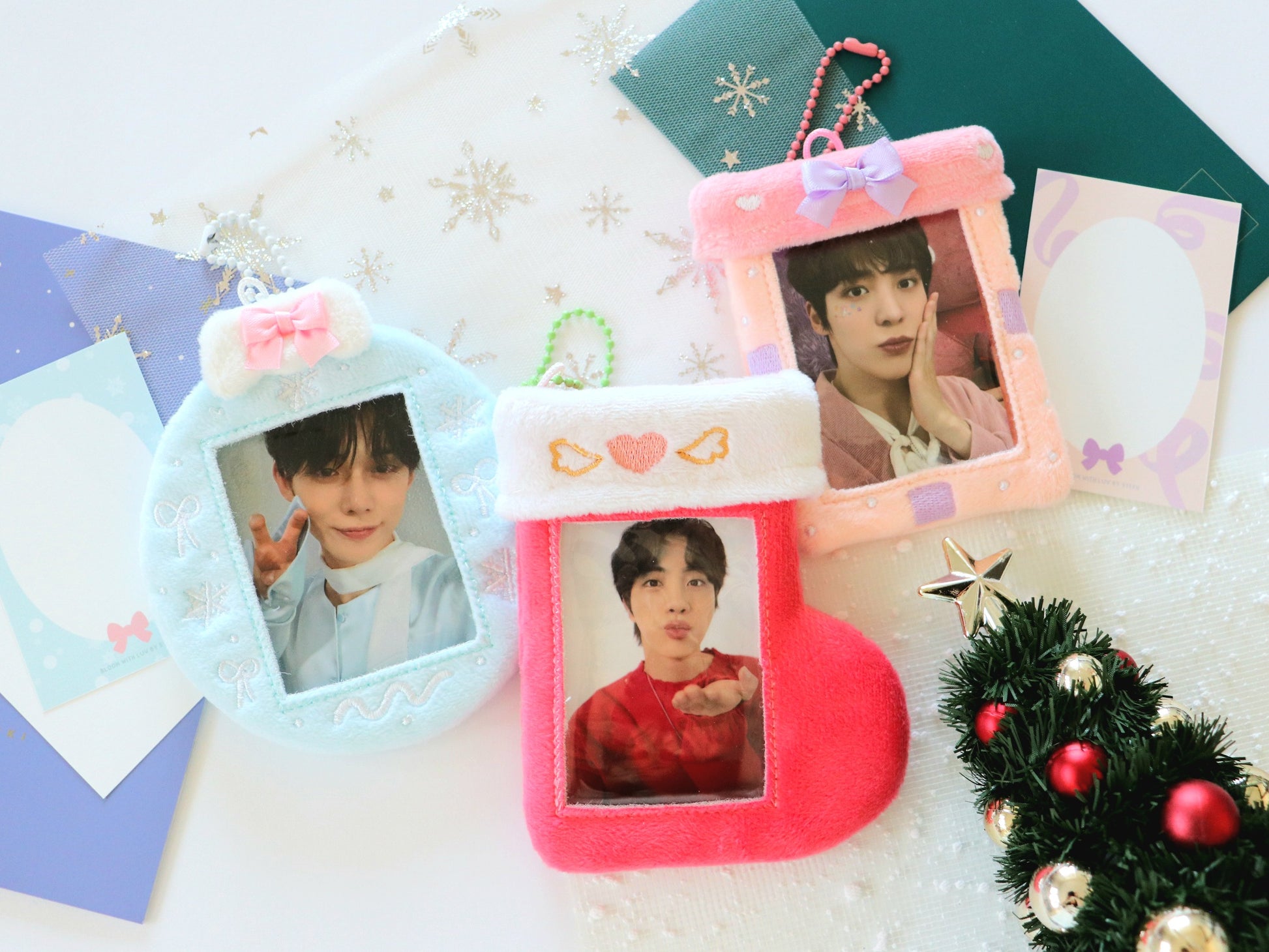Presenting your new favorite holiday decorations! These soft photocard holders can not only be used to bring your favorite photocards to your holiday outings but also to decorate! Put it on your Christmas tree, your garlands, your shelves - anywhere- to make it festive! You can even gift your bestie their dream pc in one of these!
