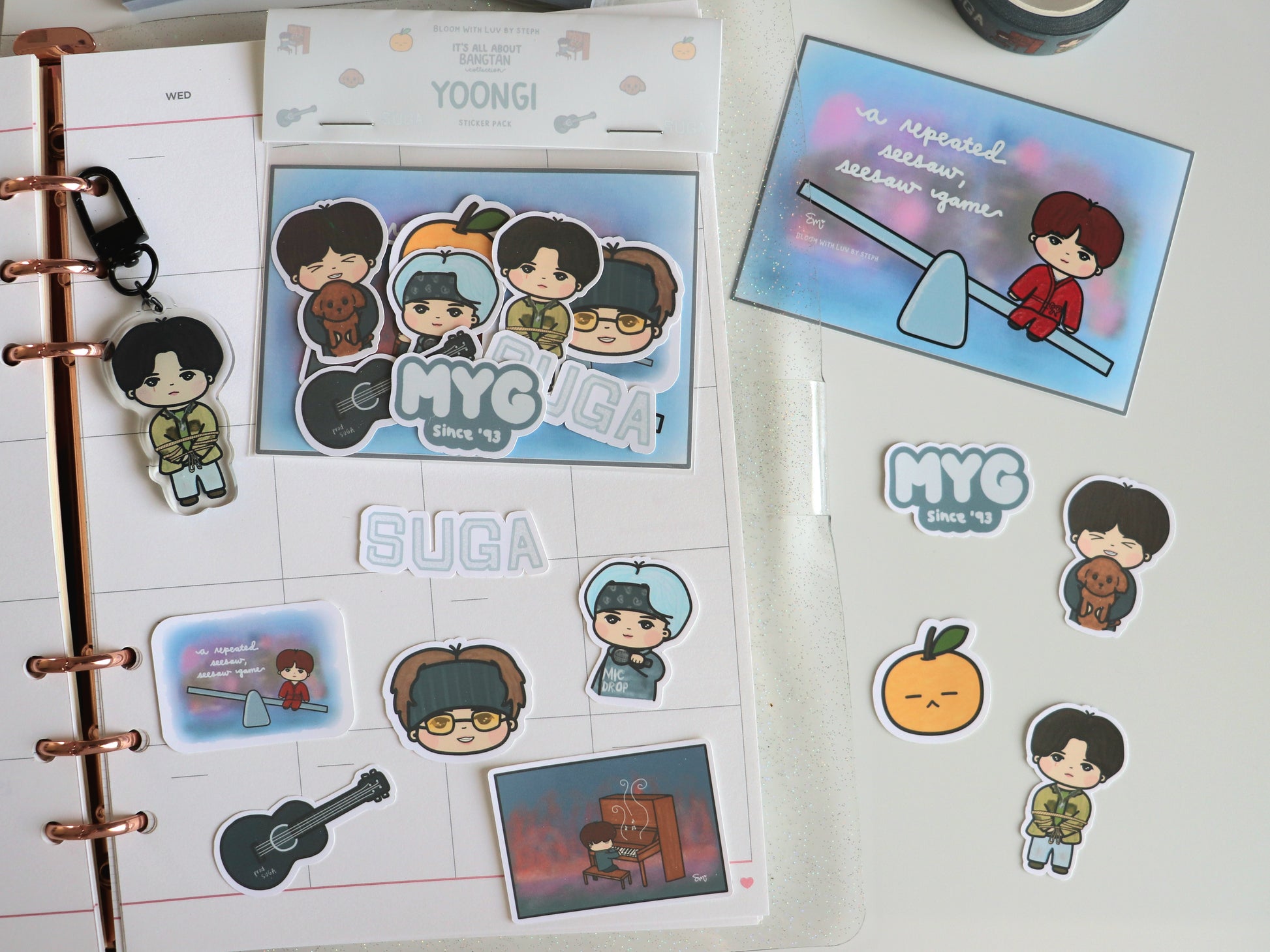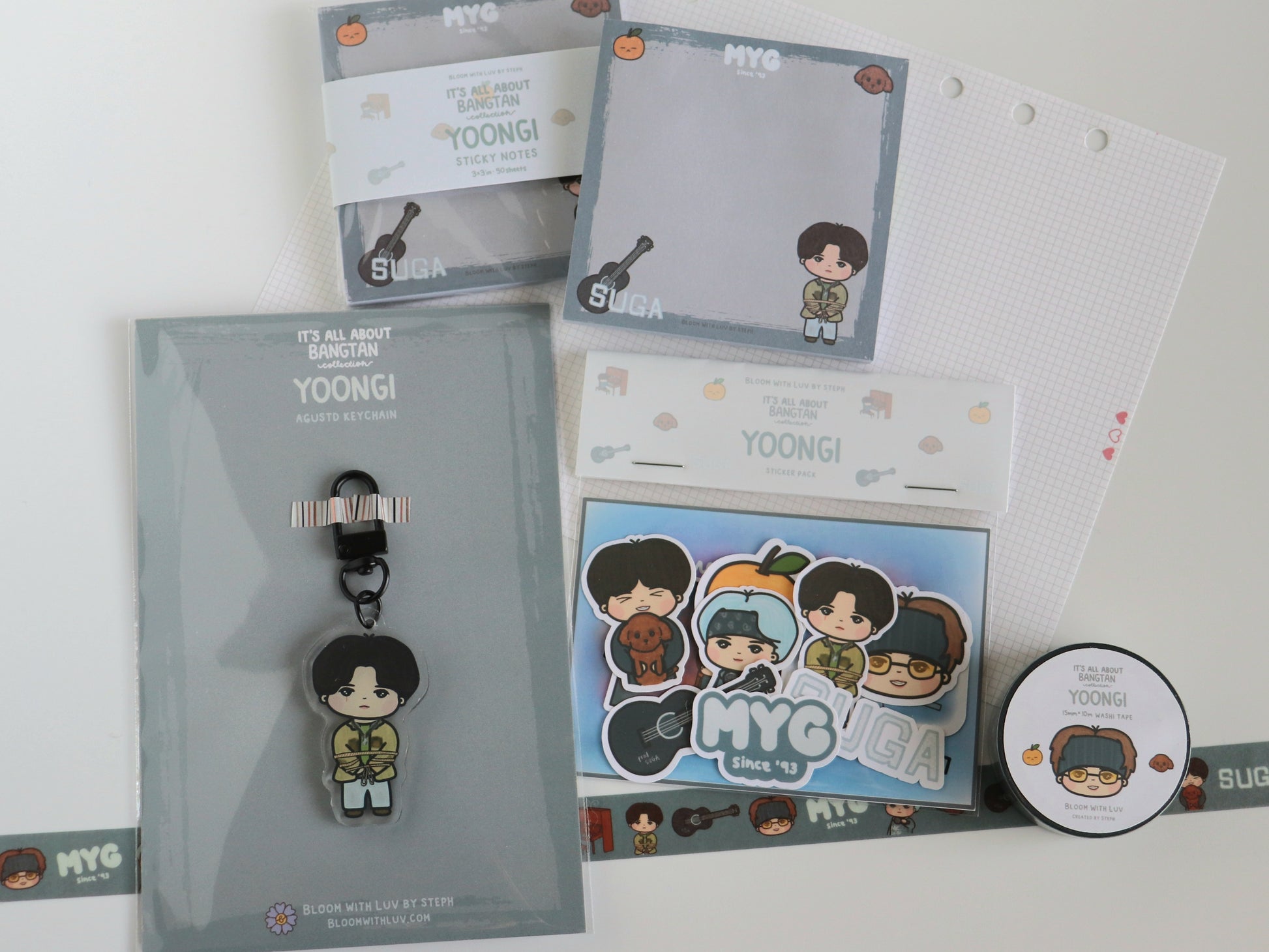 🎶 1 "It's All About Yoongi" Sticker Pack (10 stickers)🎶 1 "AGUST D" Keychain (1.75" in height)