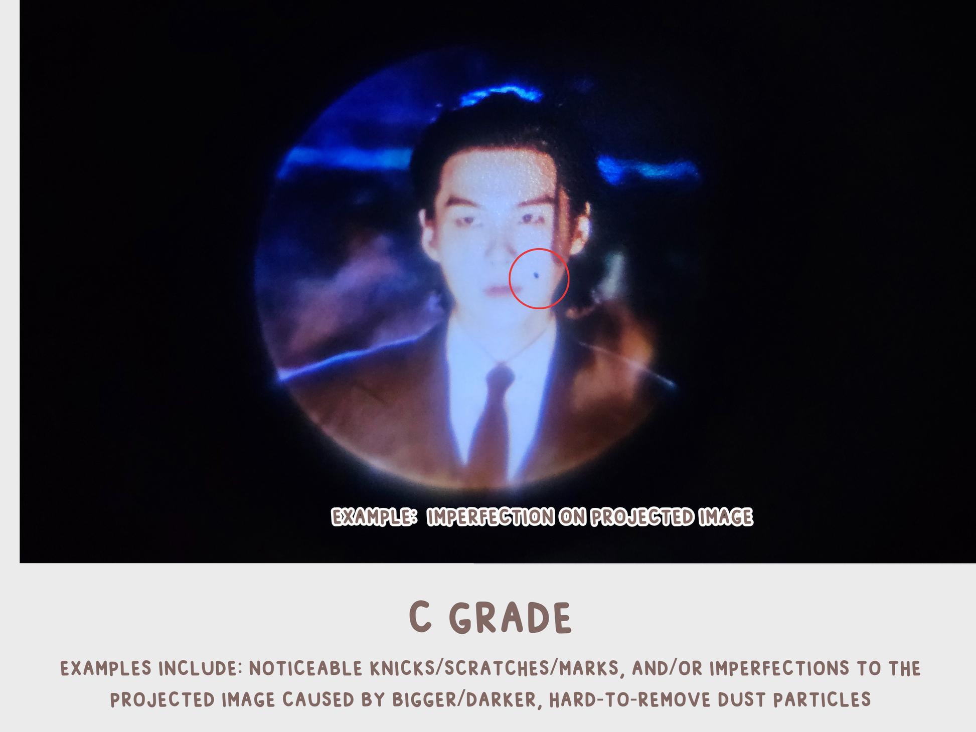 - B Grade: slightly/some noticeable imperfections on the outer pen and/or projection (see photo for examples)