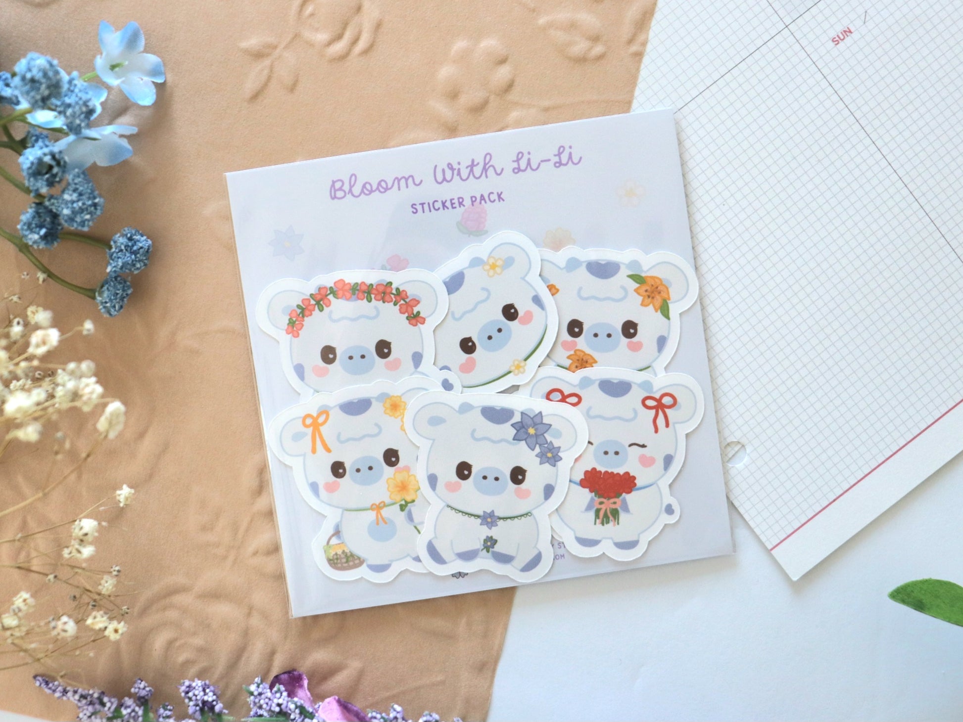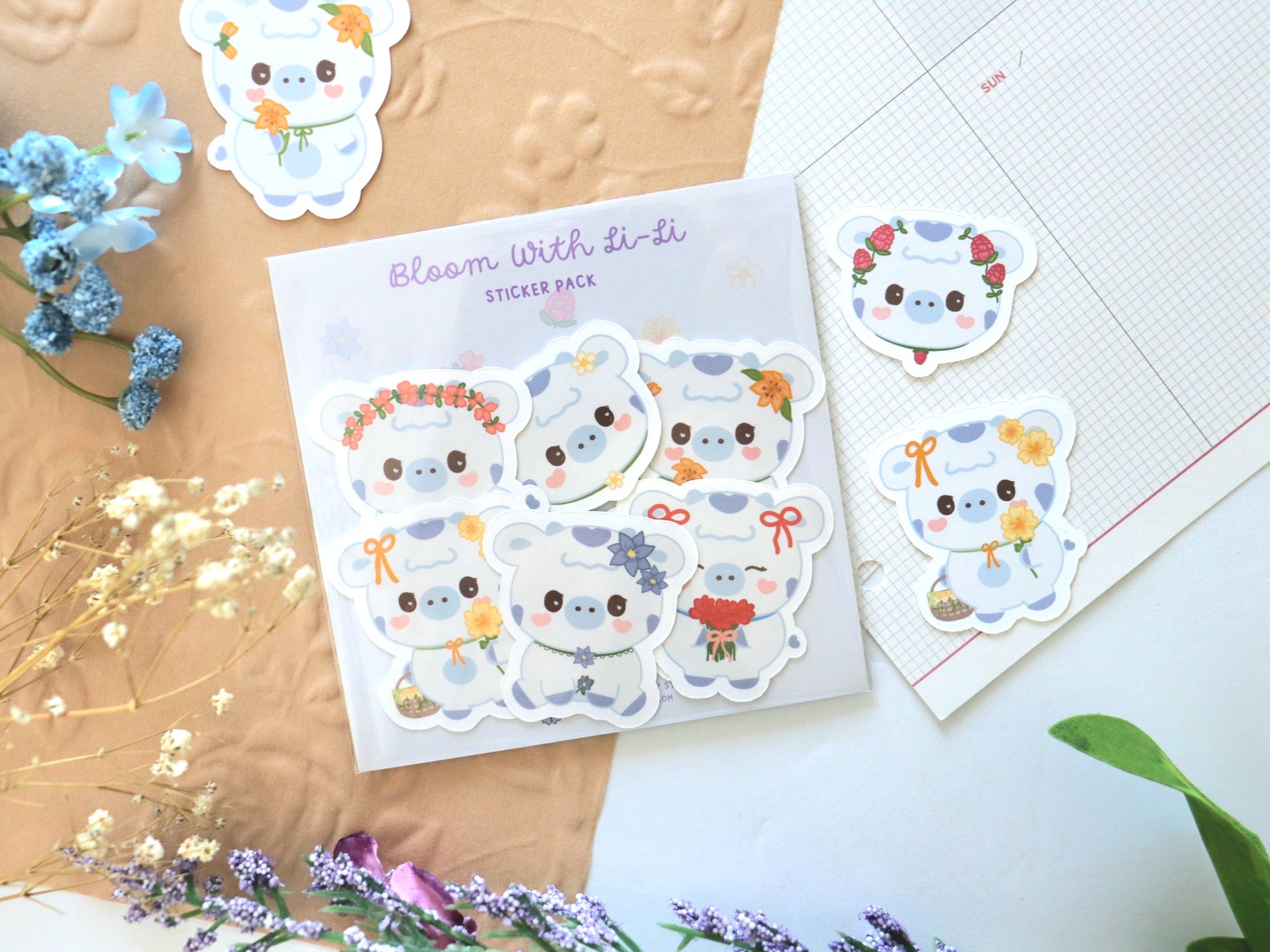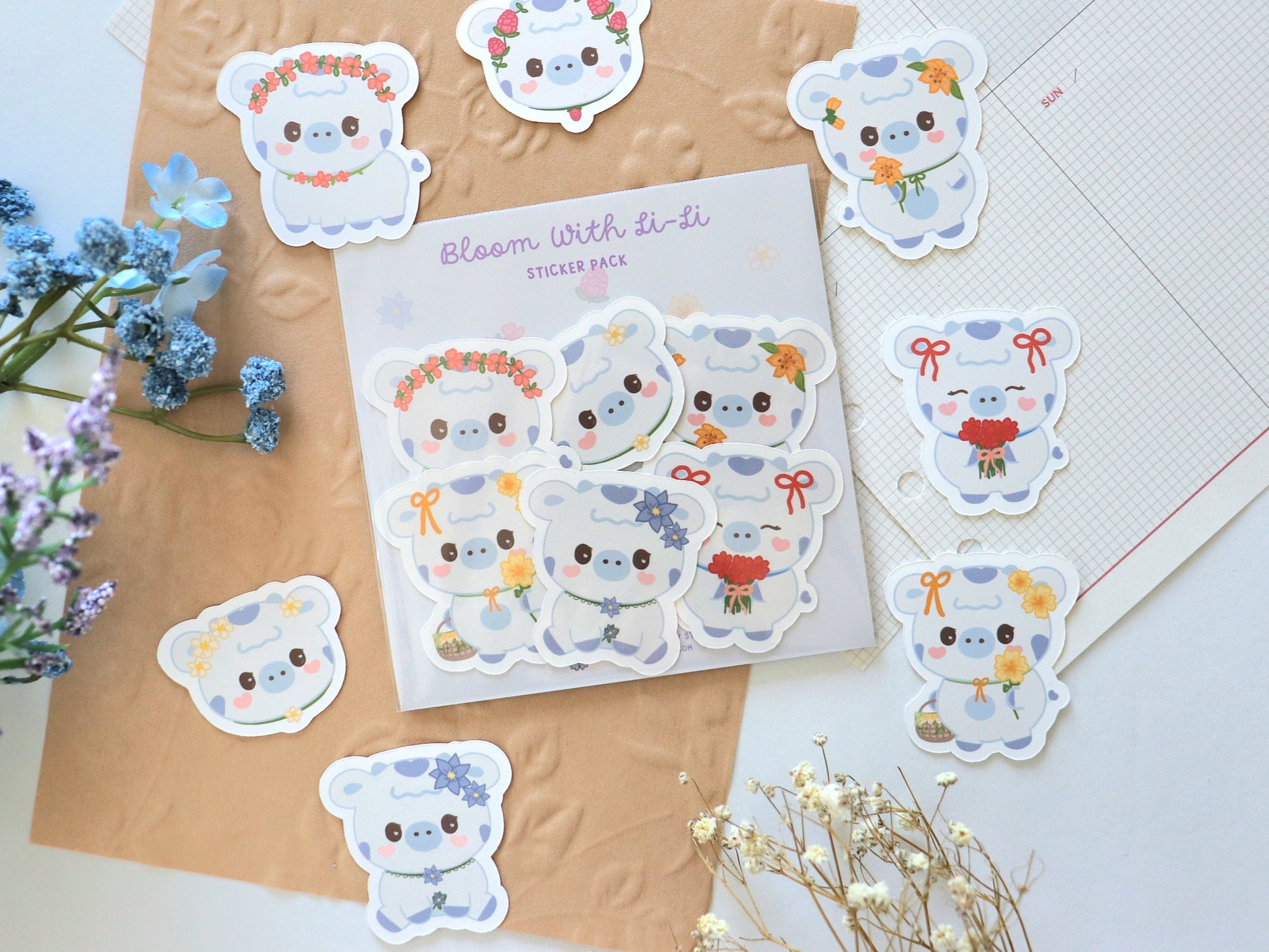 Brighten your day with Li-Li! This cute sticker pack is filled with various elegant, floral designs. Each sticker design features a different flower: clematis, rumex, larch, buttercup, spirea, carolina allspice, and tiger lily.