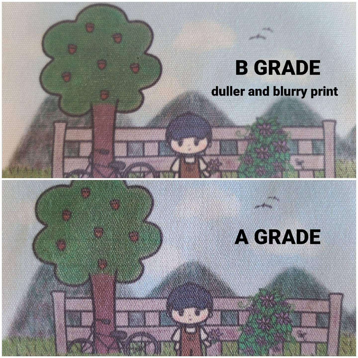 - B Grade: some imperfections to print/fabric, for example, an ink spot on the fabric or slightly blurry image (see last 2 photos)