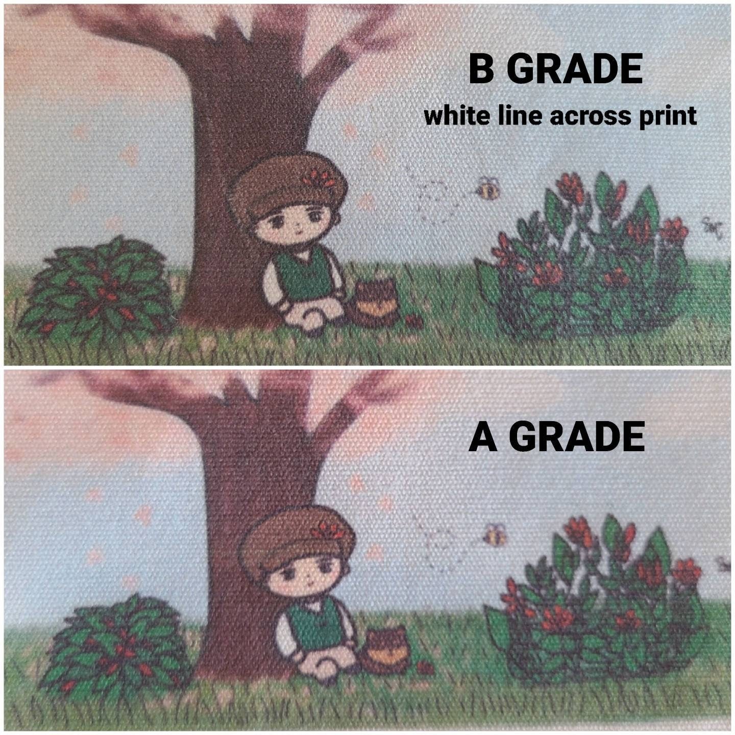 - B Grade: some imperfections to print/fabric, for example, an ink spot on the fabric (see last 2 photos)