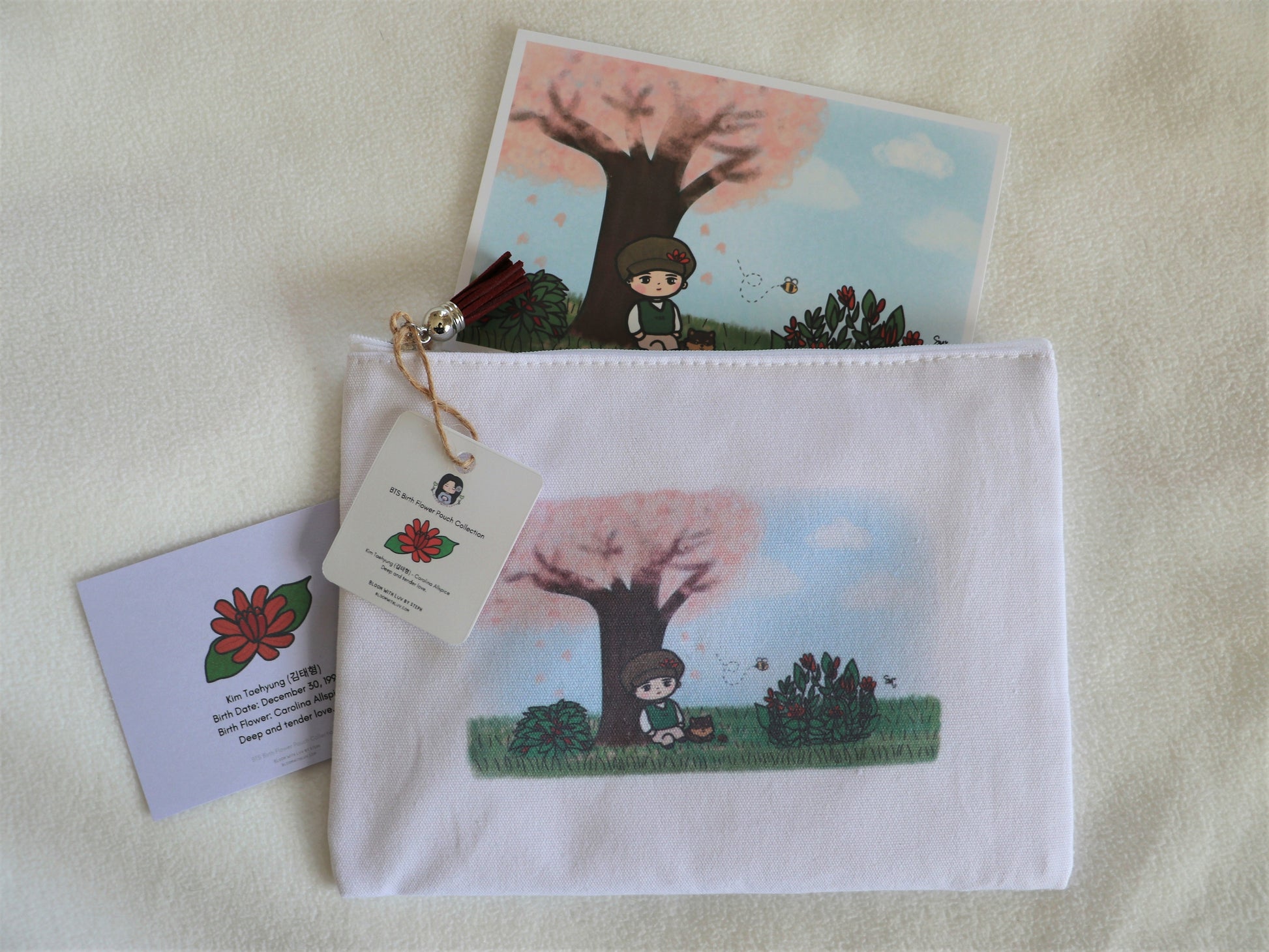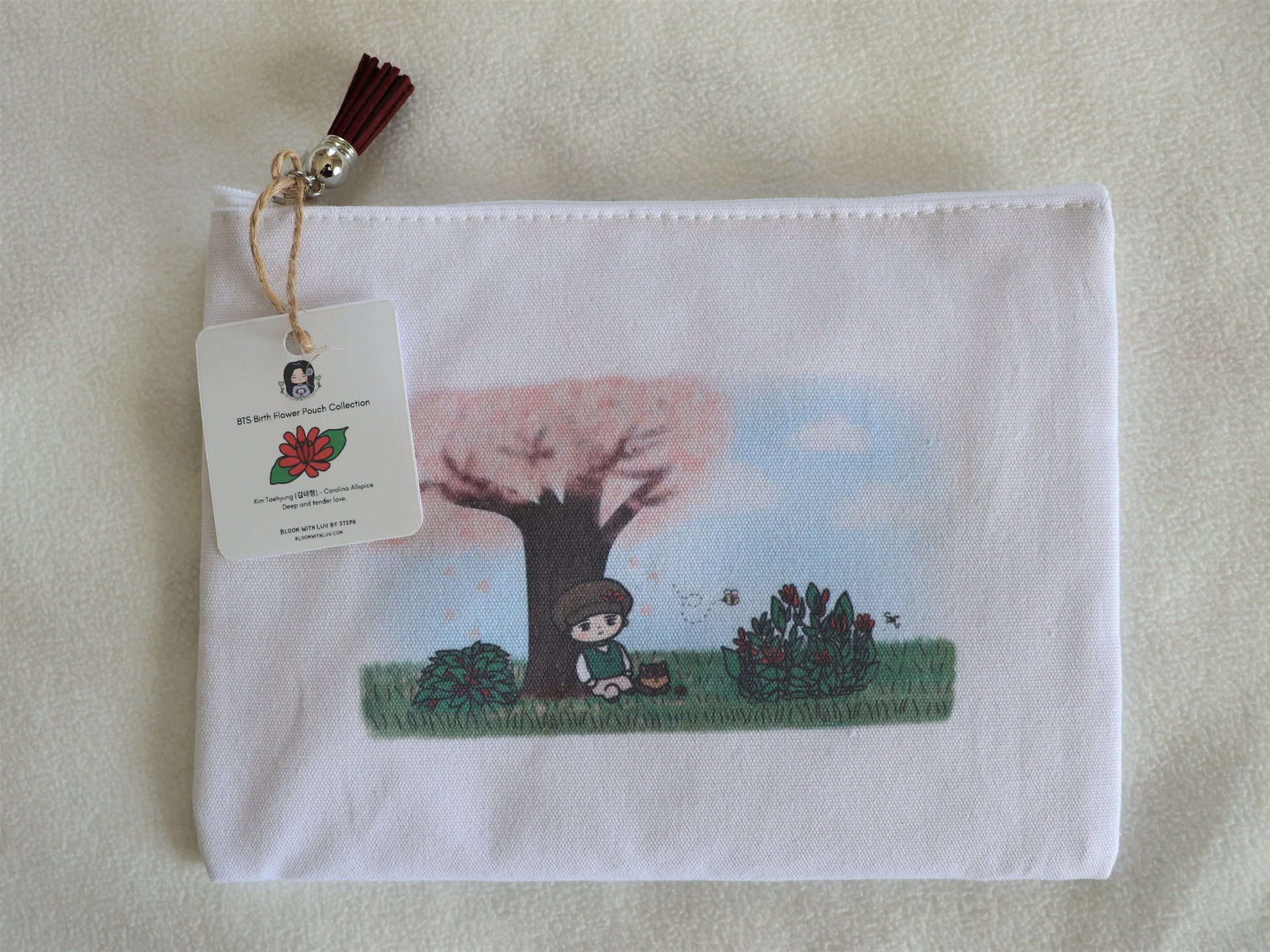 Taehyung with Yeontan Birth Flower Canvas Zipper Pouch - BTS Birth Flower Pouch Collection