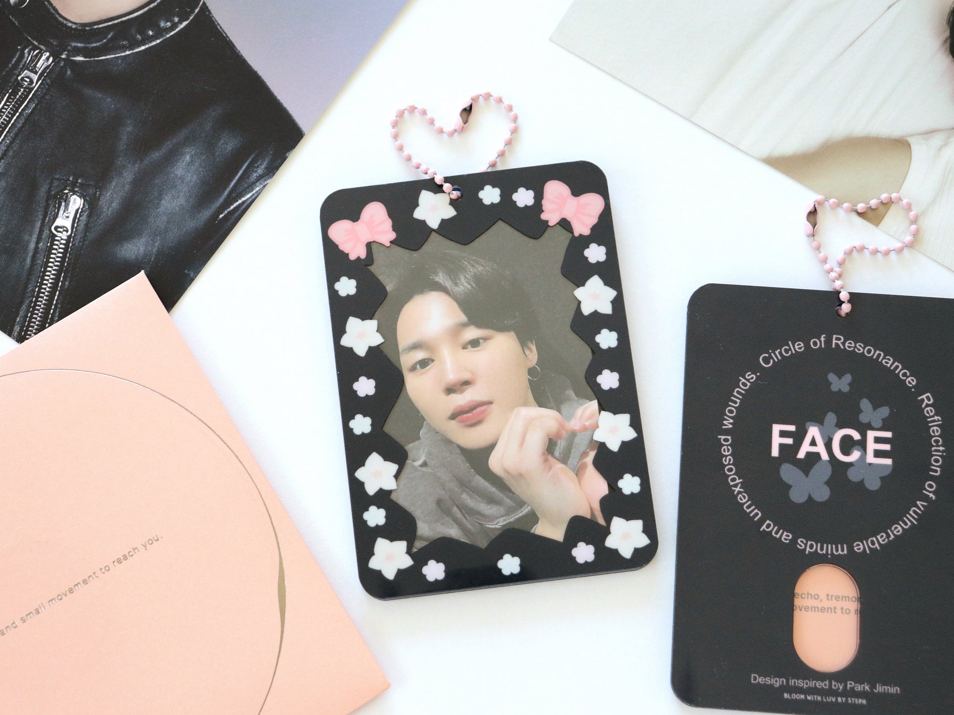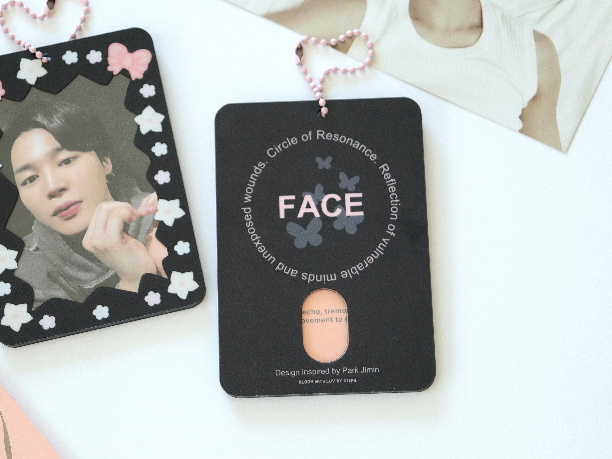 Circle of resonance. Reflection of vulnerable minds and unexposed wounds. This acrylic photocard holder inspired by one of Jimin's cute top loader deco creations and first solo album, FACE.