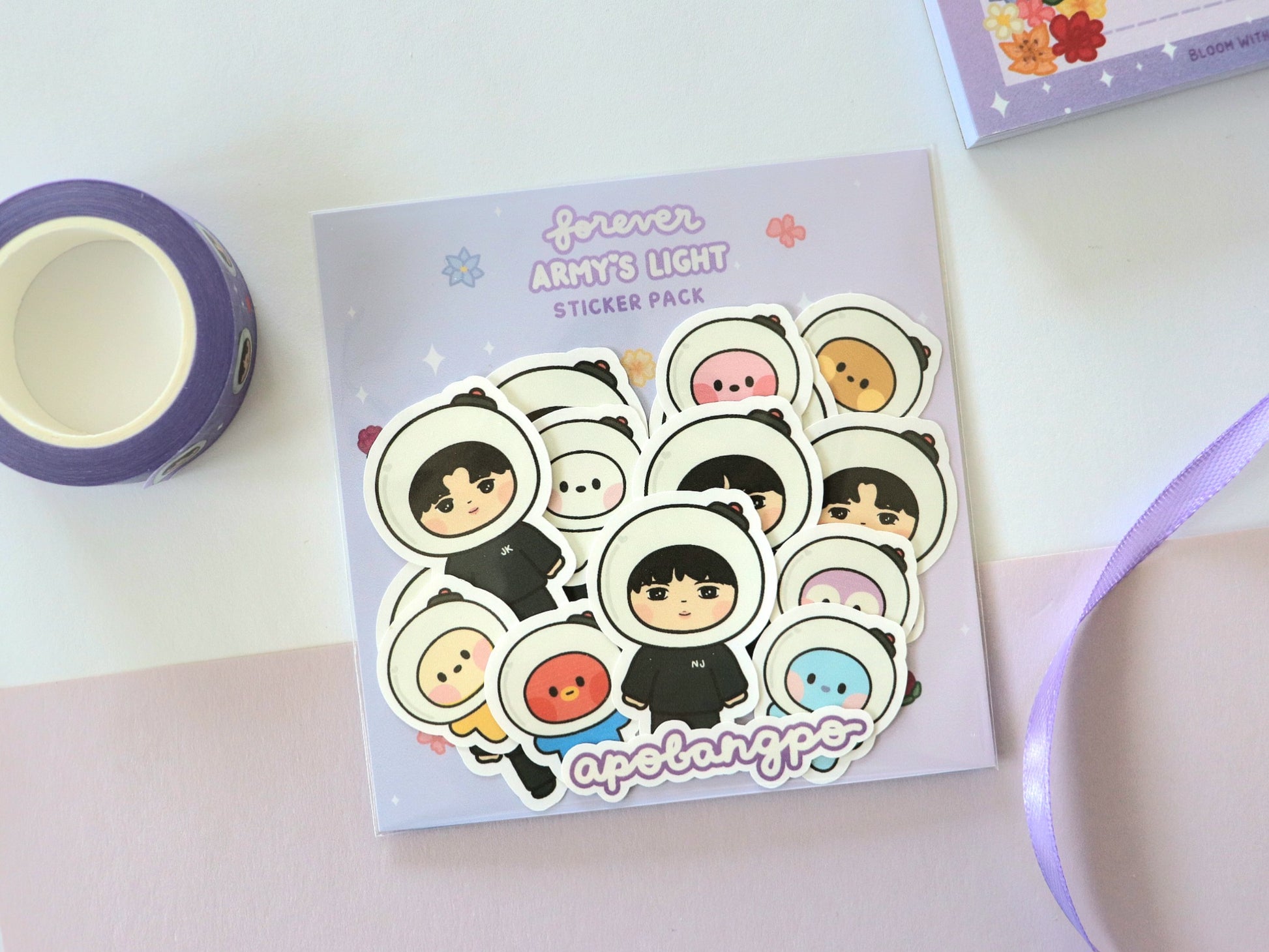 Bangtan is forever ARMY's light. Created to celebrate Festa 2025 and bora-fy your deco, these cute stickers of tannies and friends dressed in the ARMY bomb light stick hats will surely brighten your day.