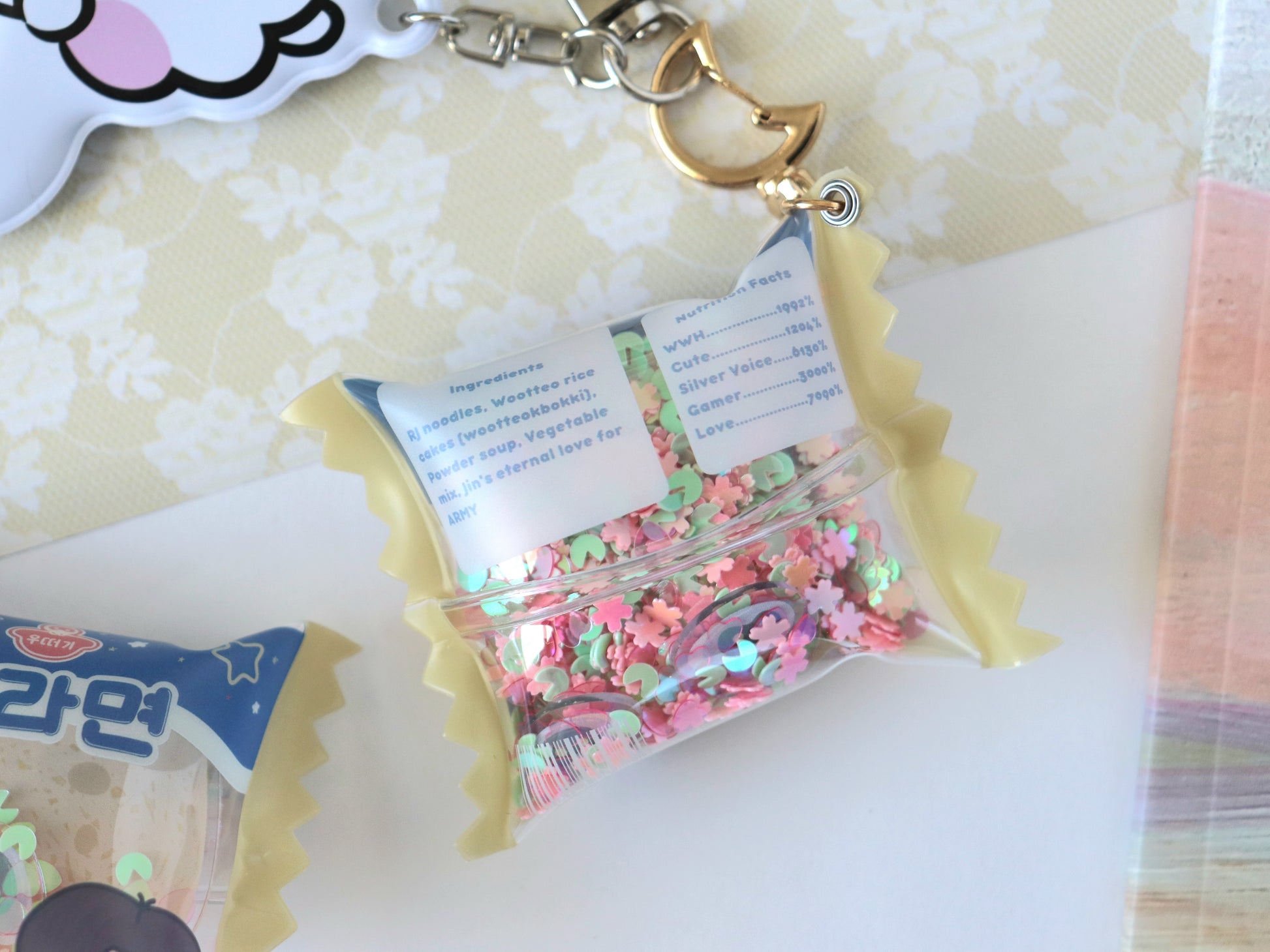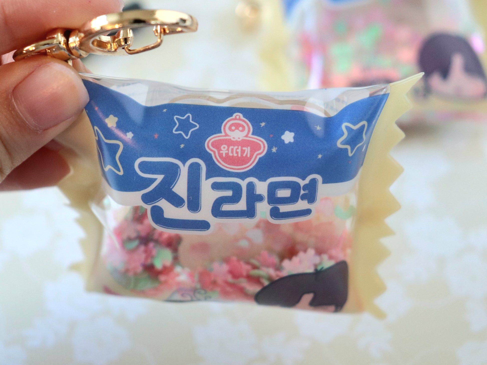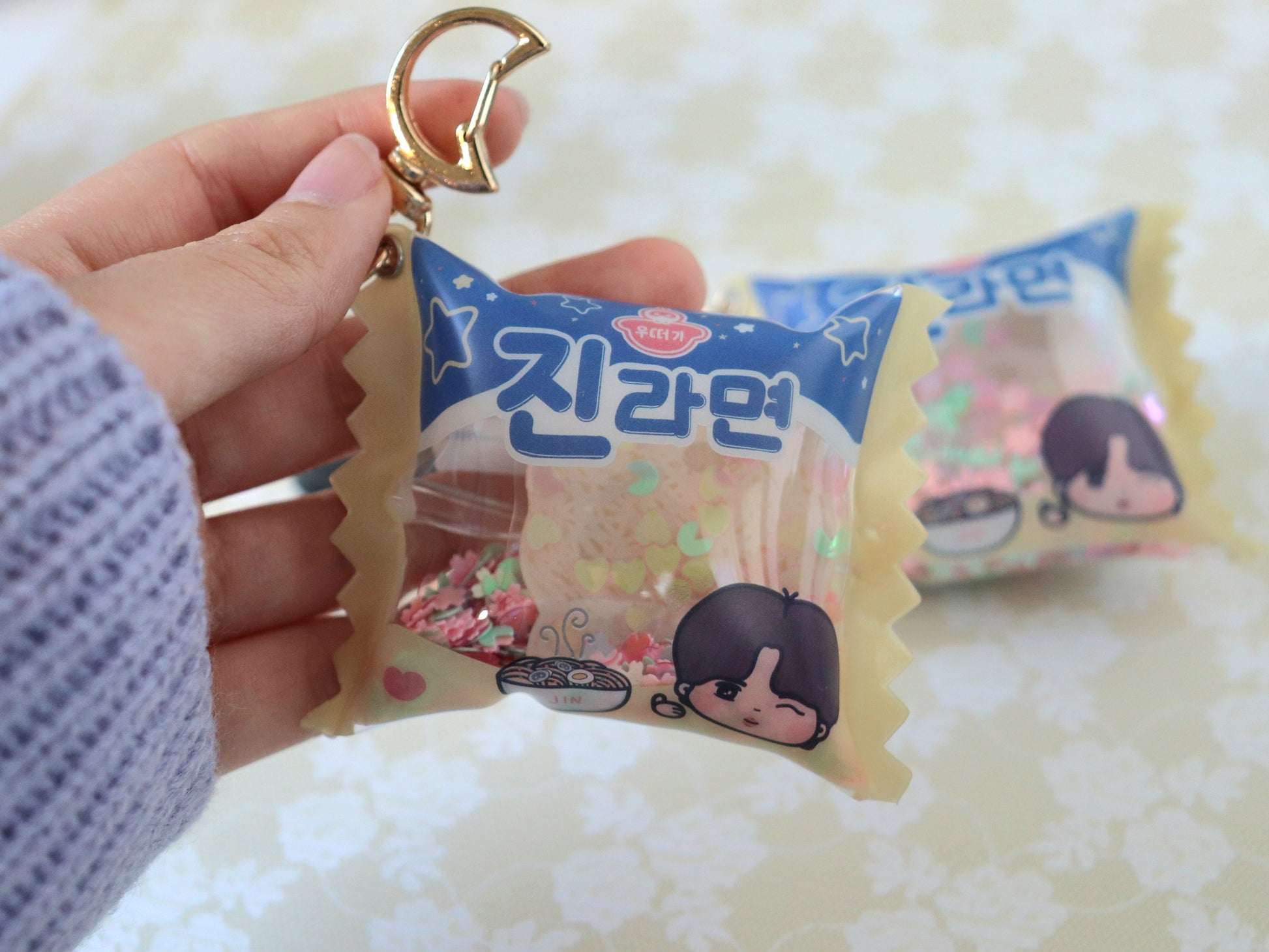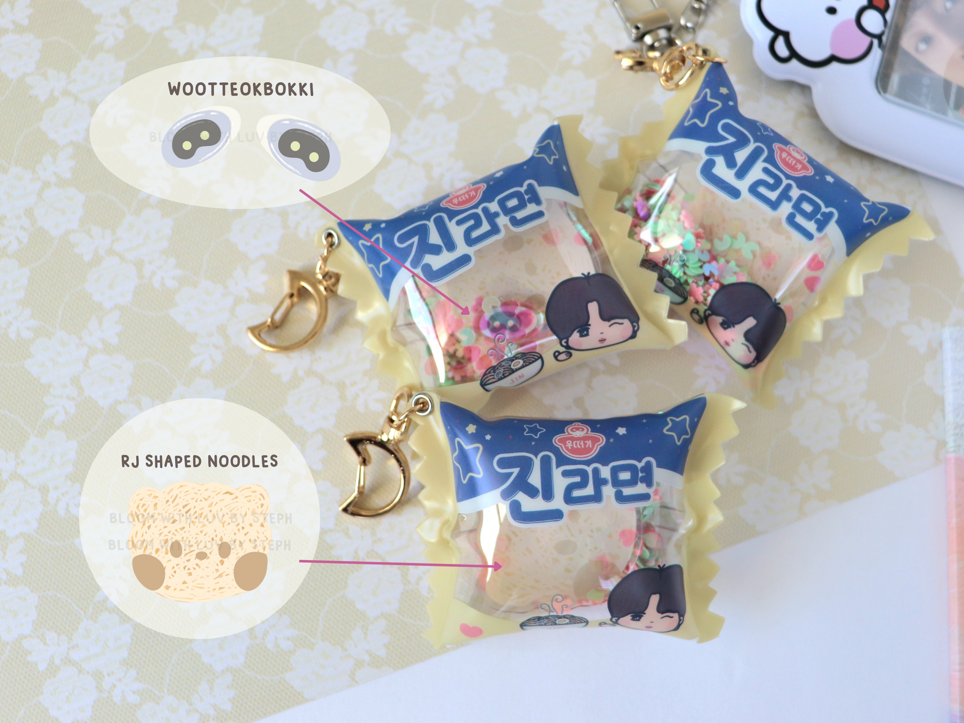 🥢 3 acrylic shaker pieces inside (1 RJ shaped noodle piece, 2 wootteokbokkis)