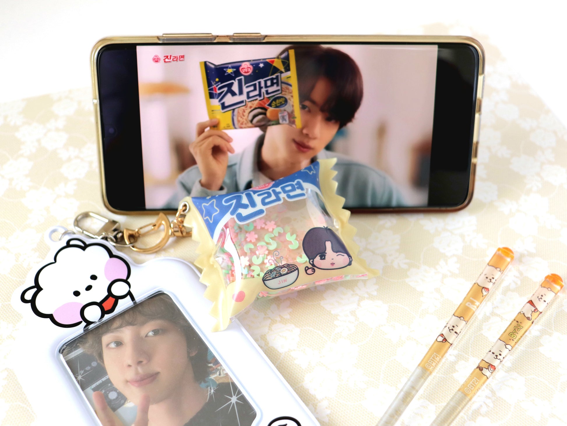 this keychain is a dream! the details in everything is so cute and fitting for ARMY! a must have for jin lovers ✨