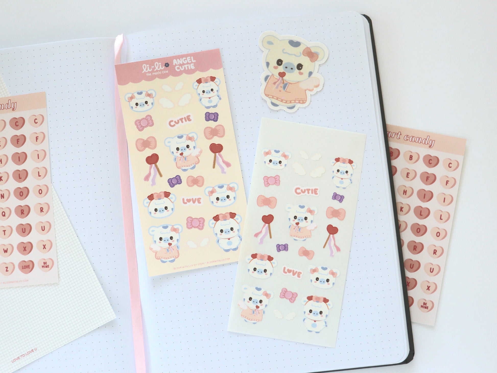 Li-Li is dressed pretty in pink and is full of love! Lots of hearts, bows, angel wings, and pink.