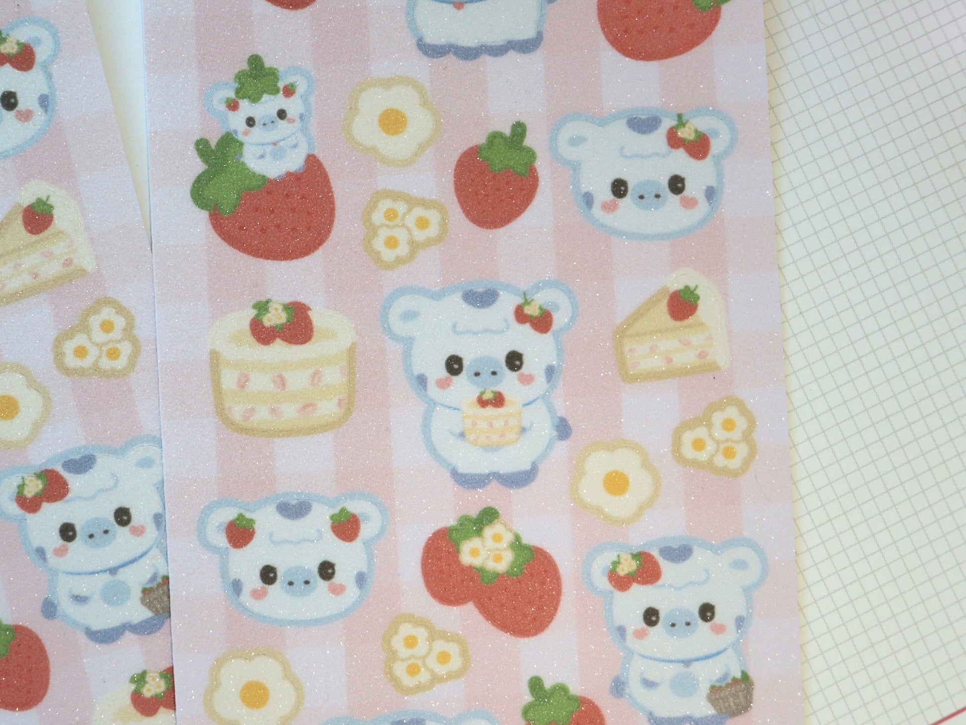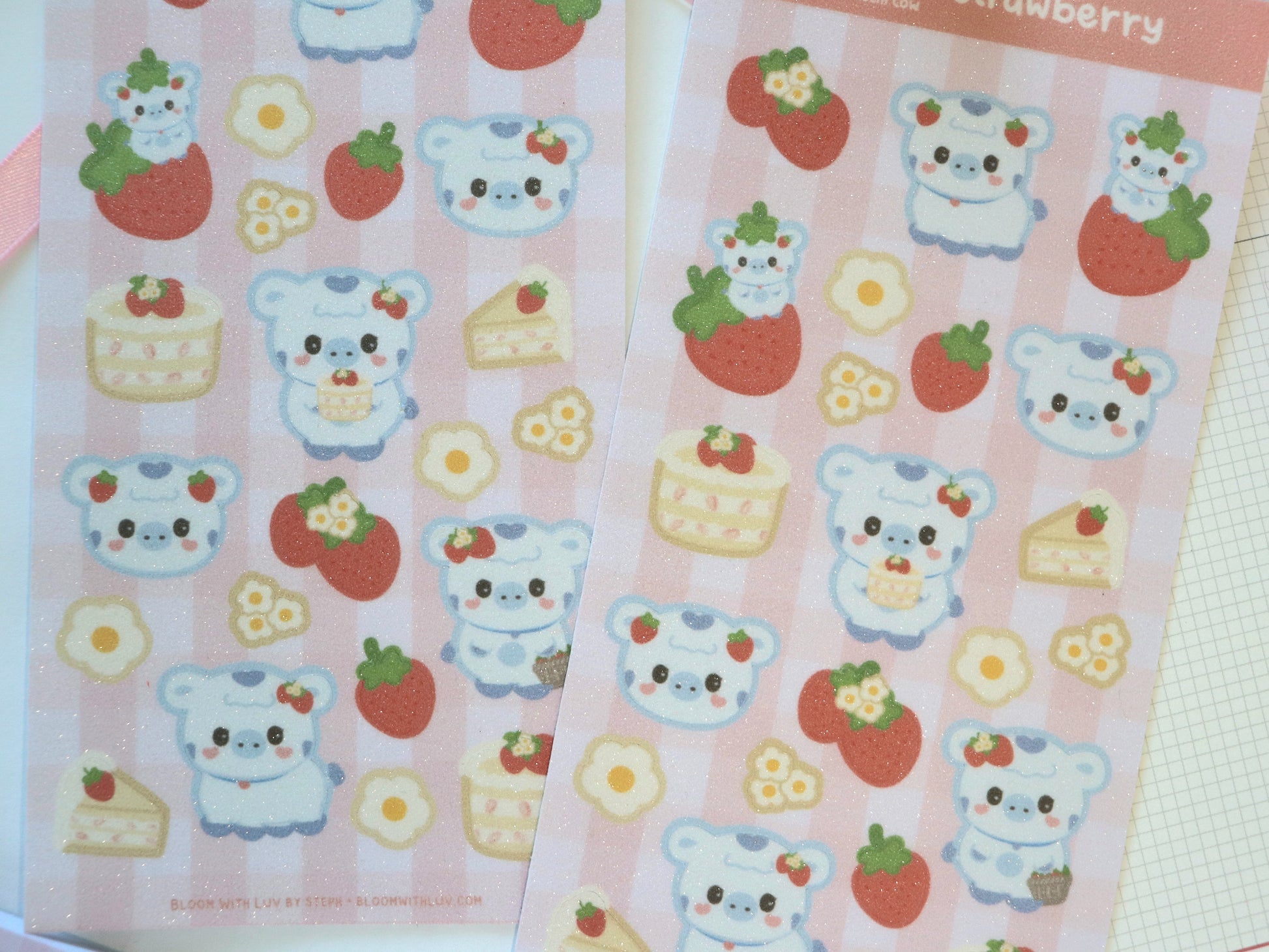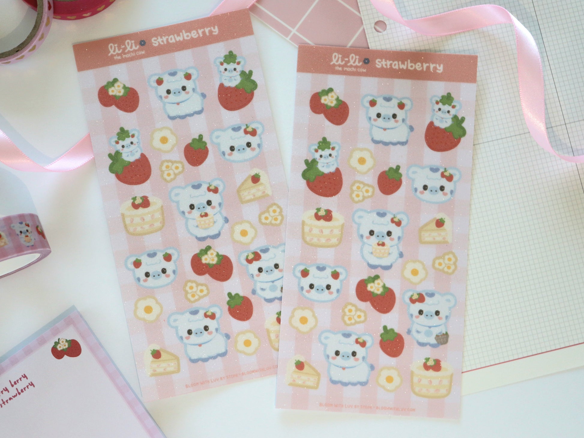 A sweet glitter sticker sheet full of fresh flowers and strawberries - Li-Li's favorite!