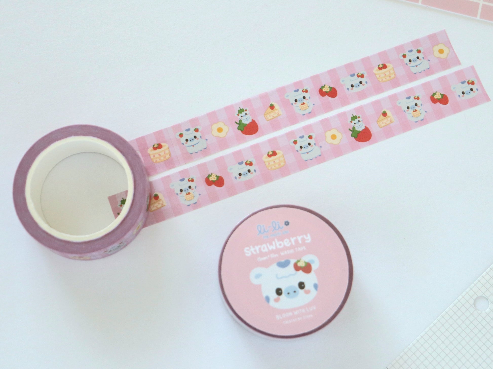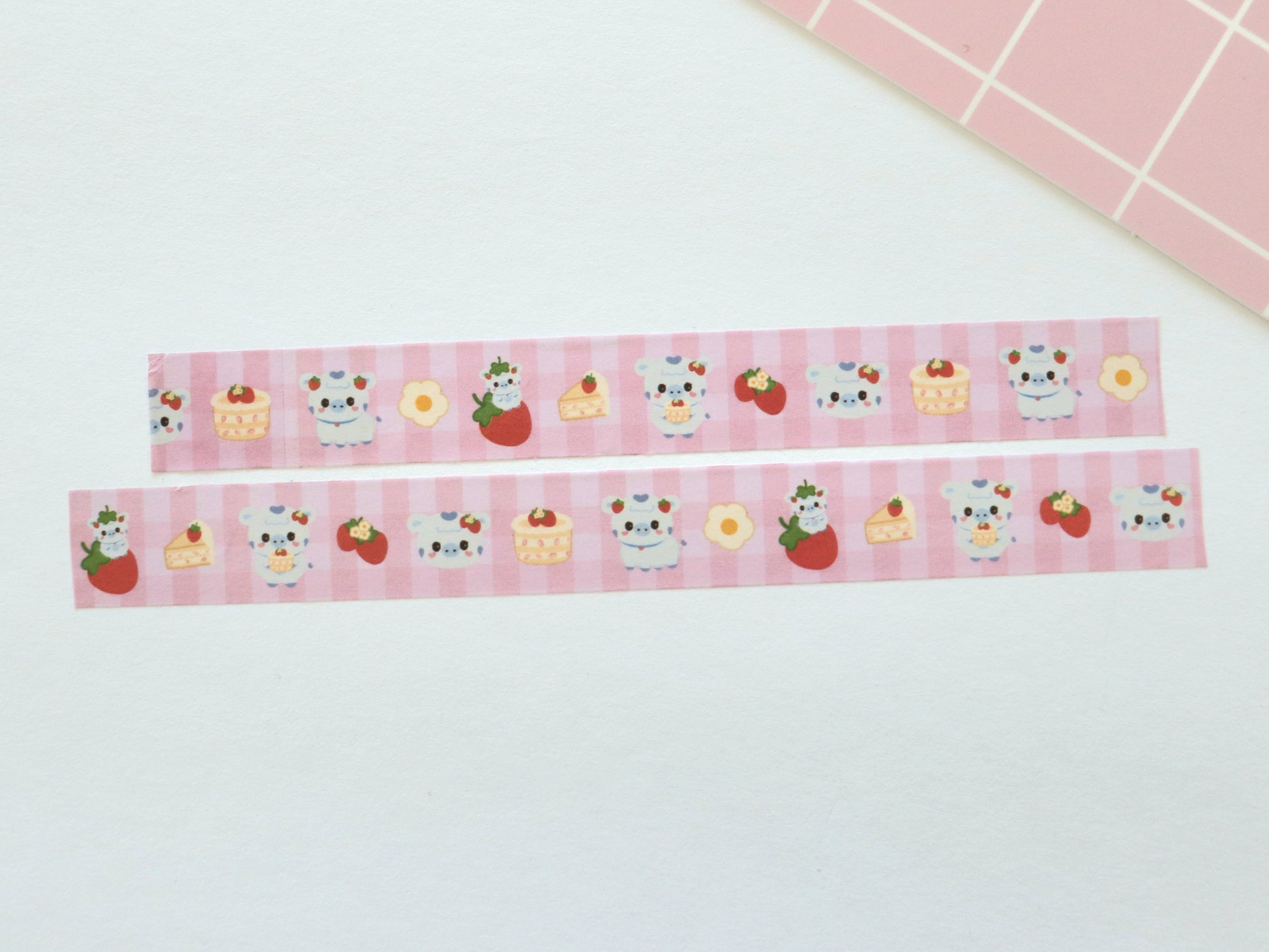 Sweet pink gingham washi tape featuring lots of strawberries - Li-Li's favorite!