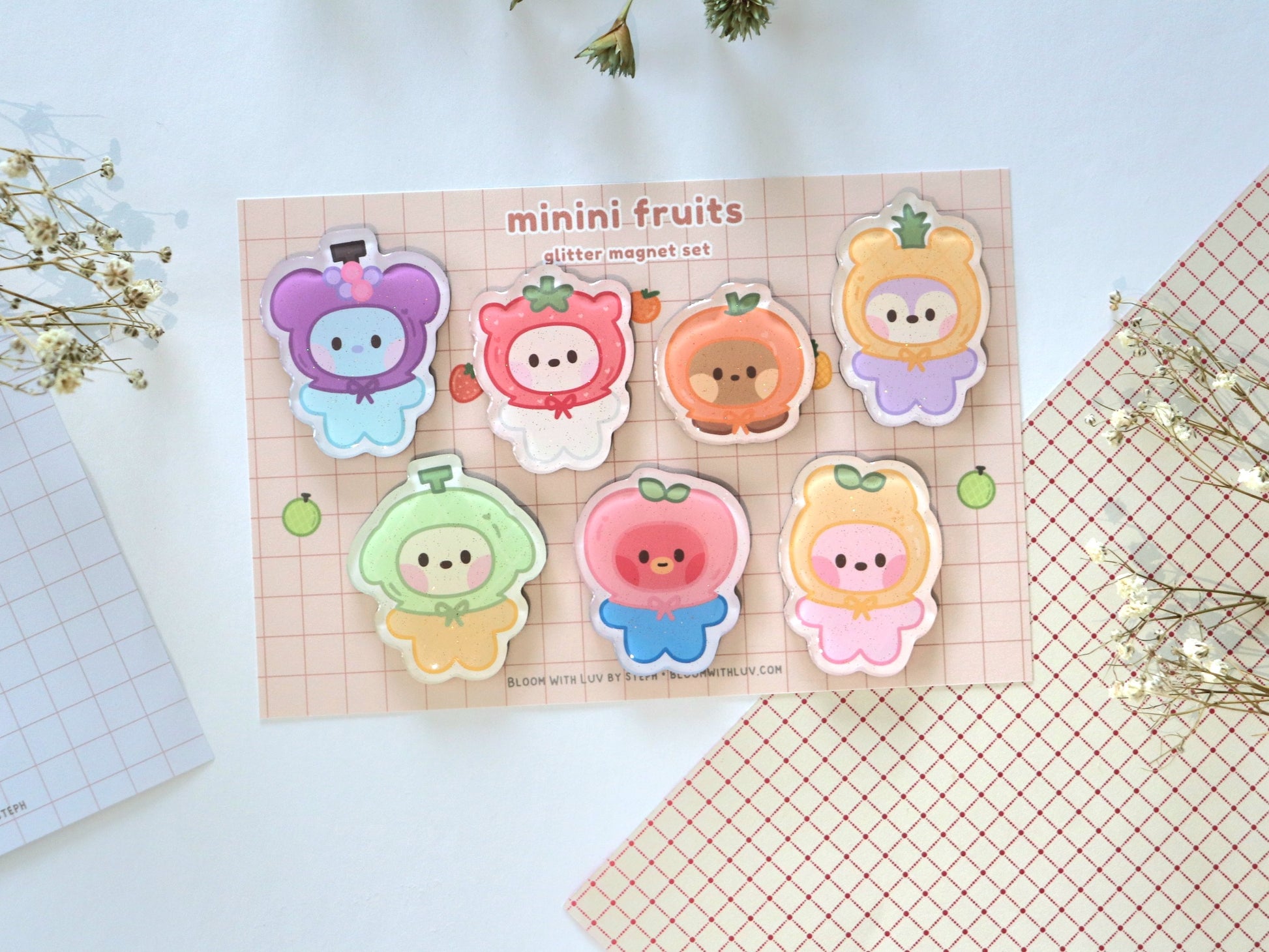 For all the foodies who love cute things and want to brighten their space with some minini fruits. Place on metal surfaces to decorate with your favorite mininis in their fruit hats!