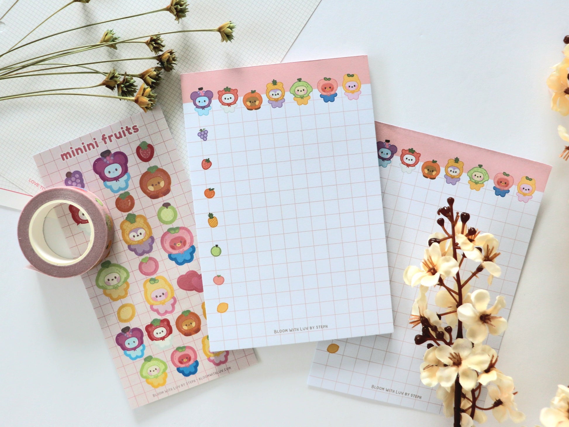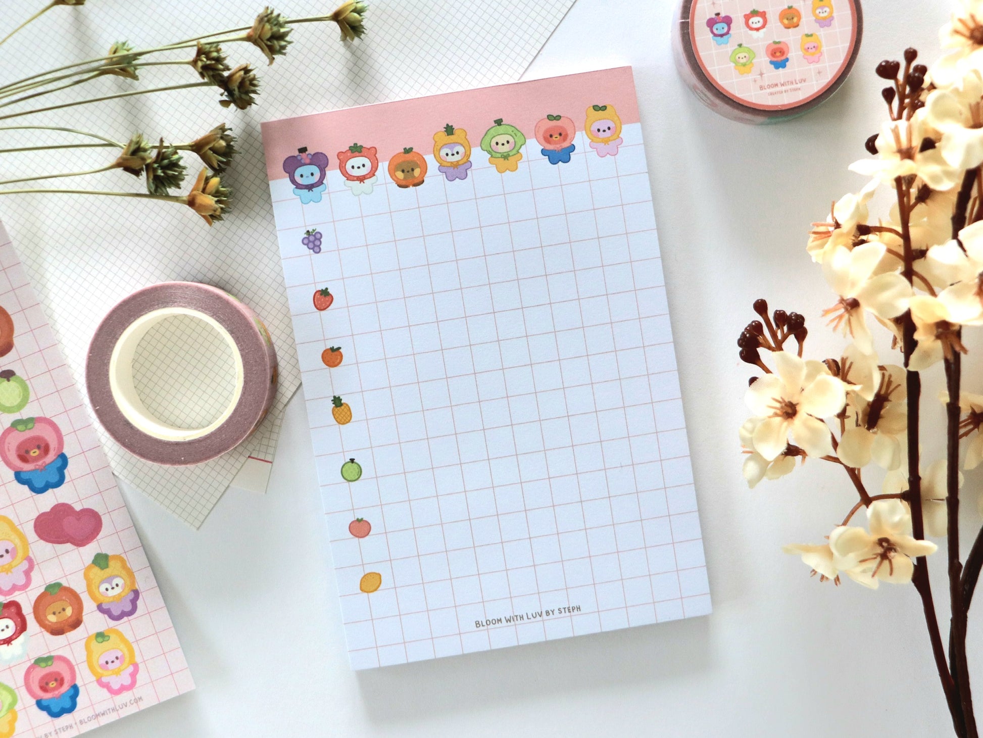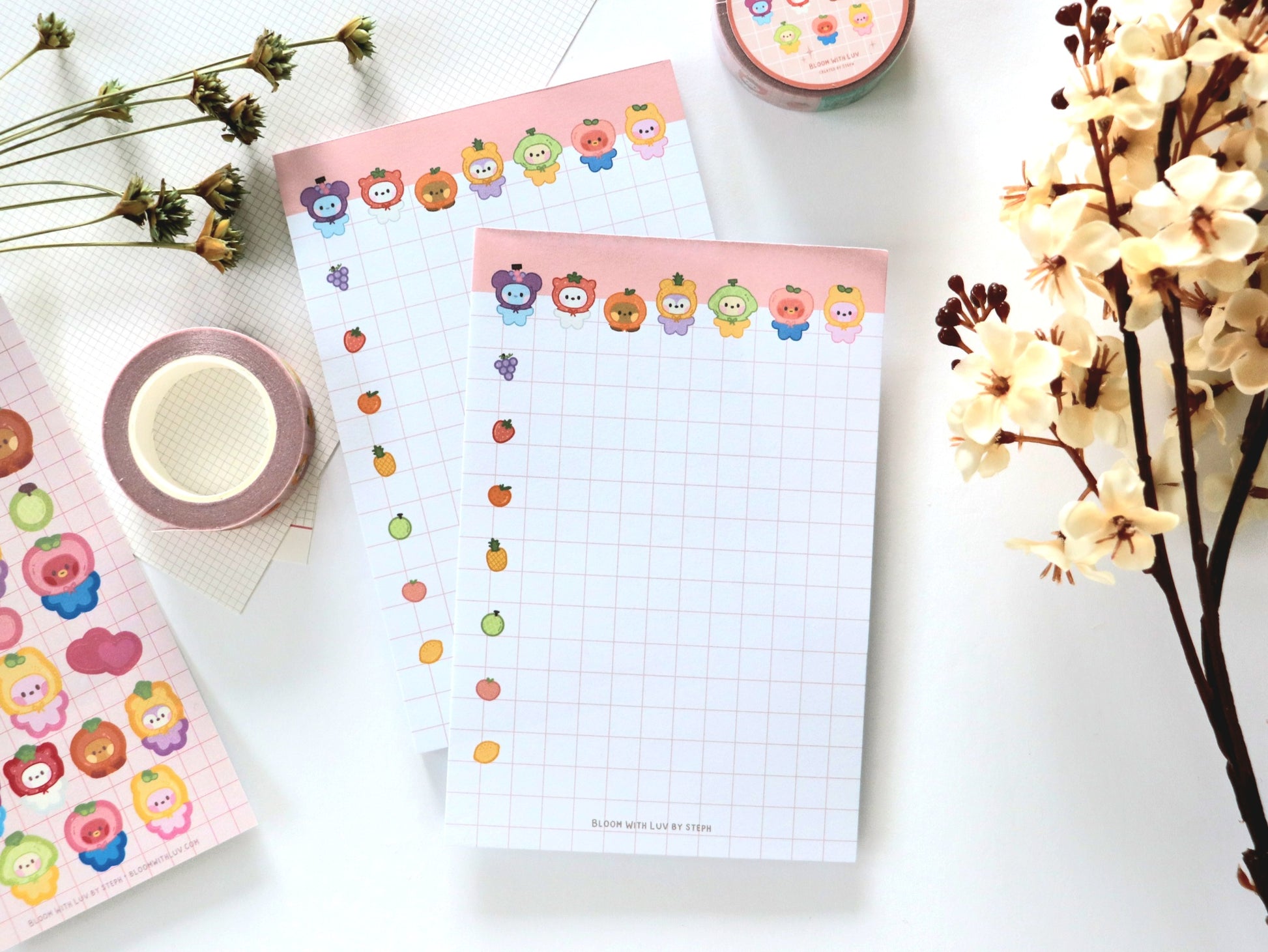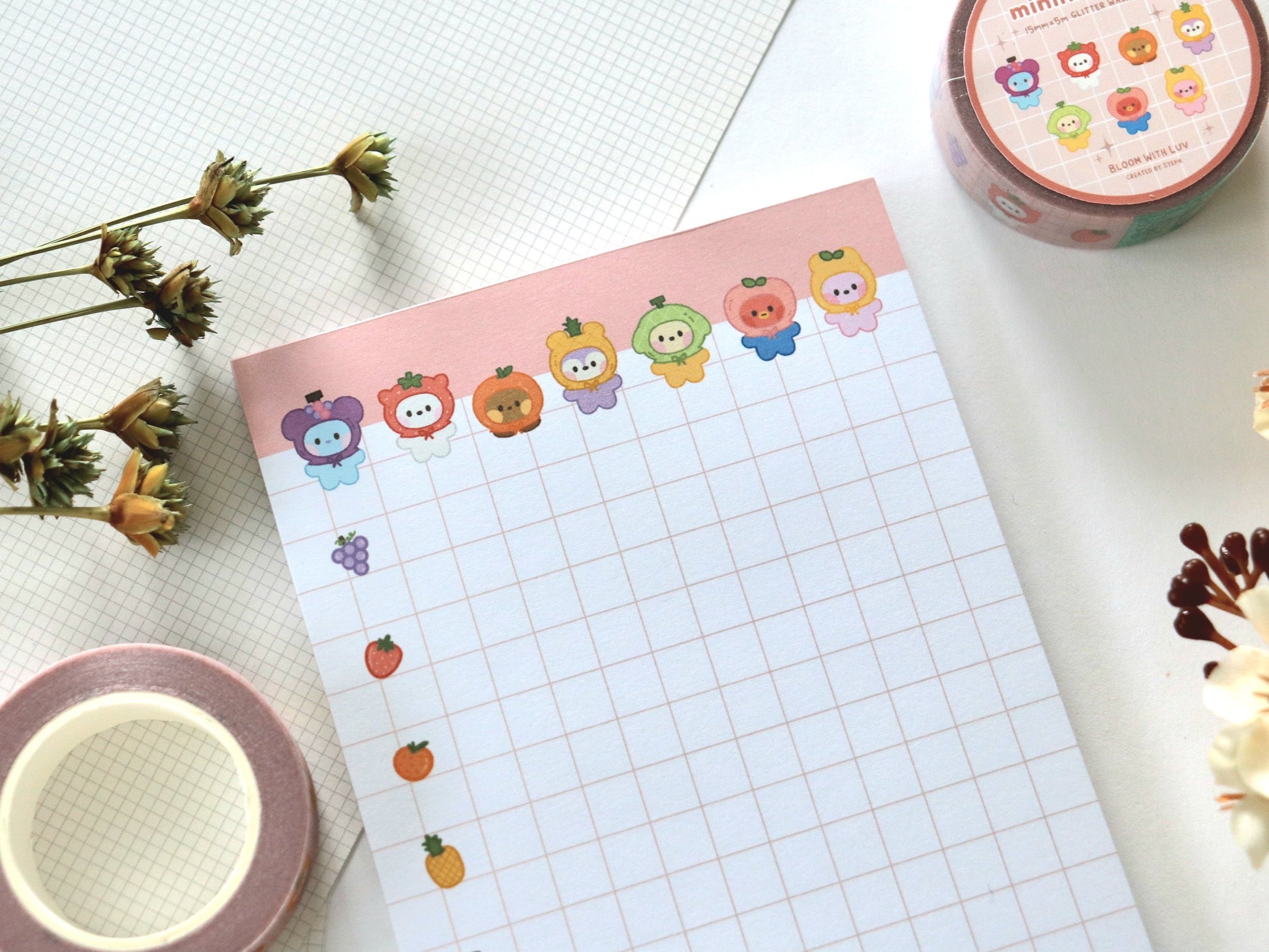 For all the foodies who love cute things and want to brighten their days with some minini fruits! Fun notepad design for writing down important notes and especially perfect for making grocery shopping lists!