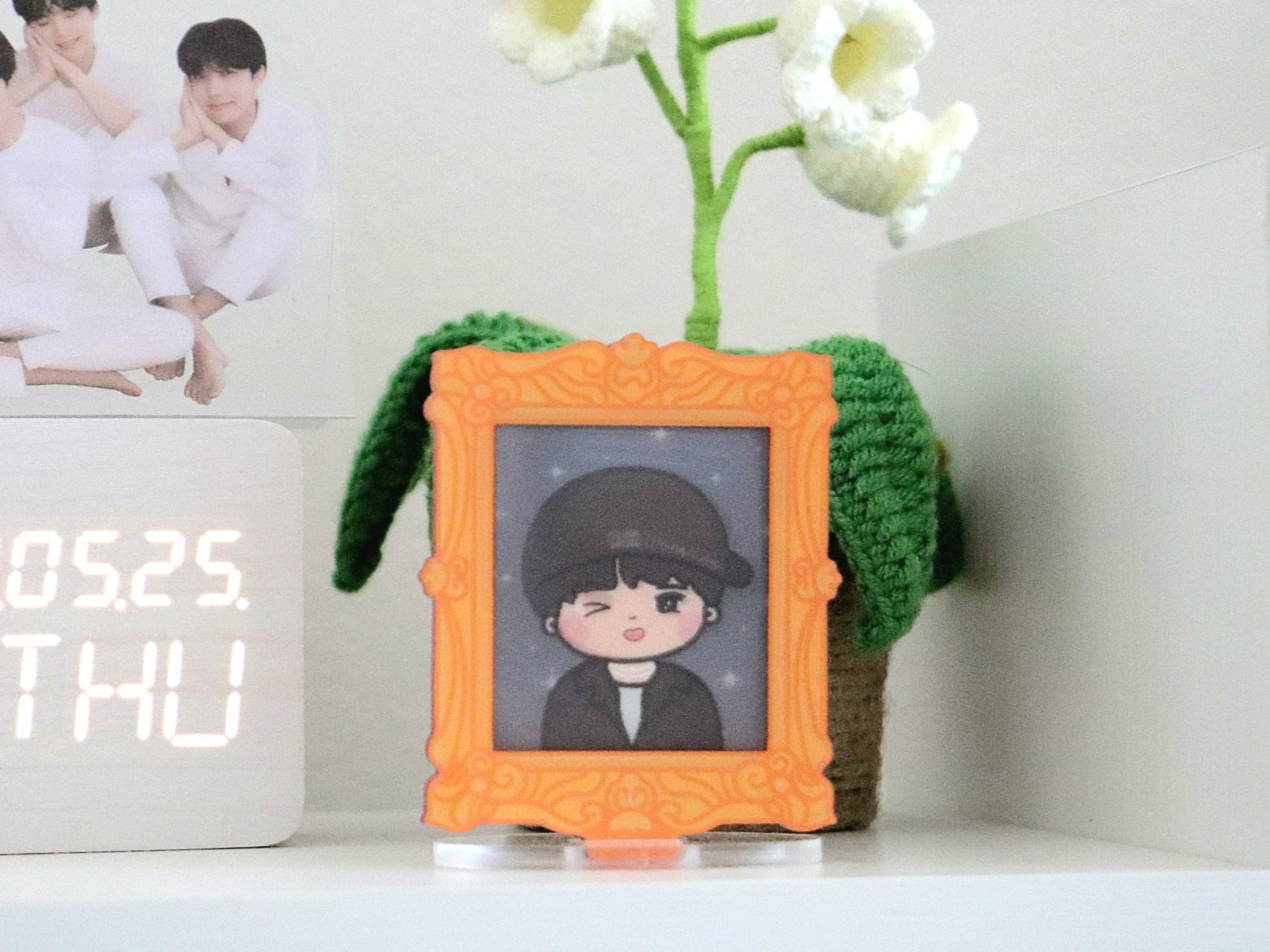 This mini acrylic frame standee comes with a small lenticular photo of Hobi, who winks at you when you pan the photo from left to right.