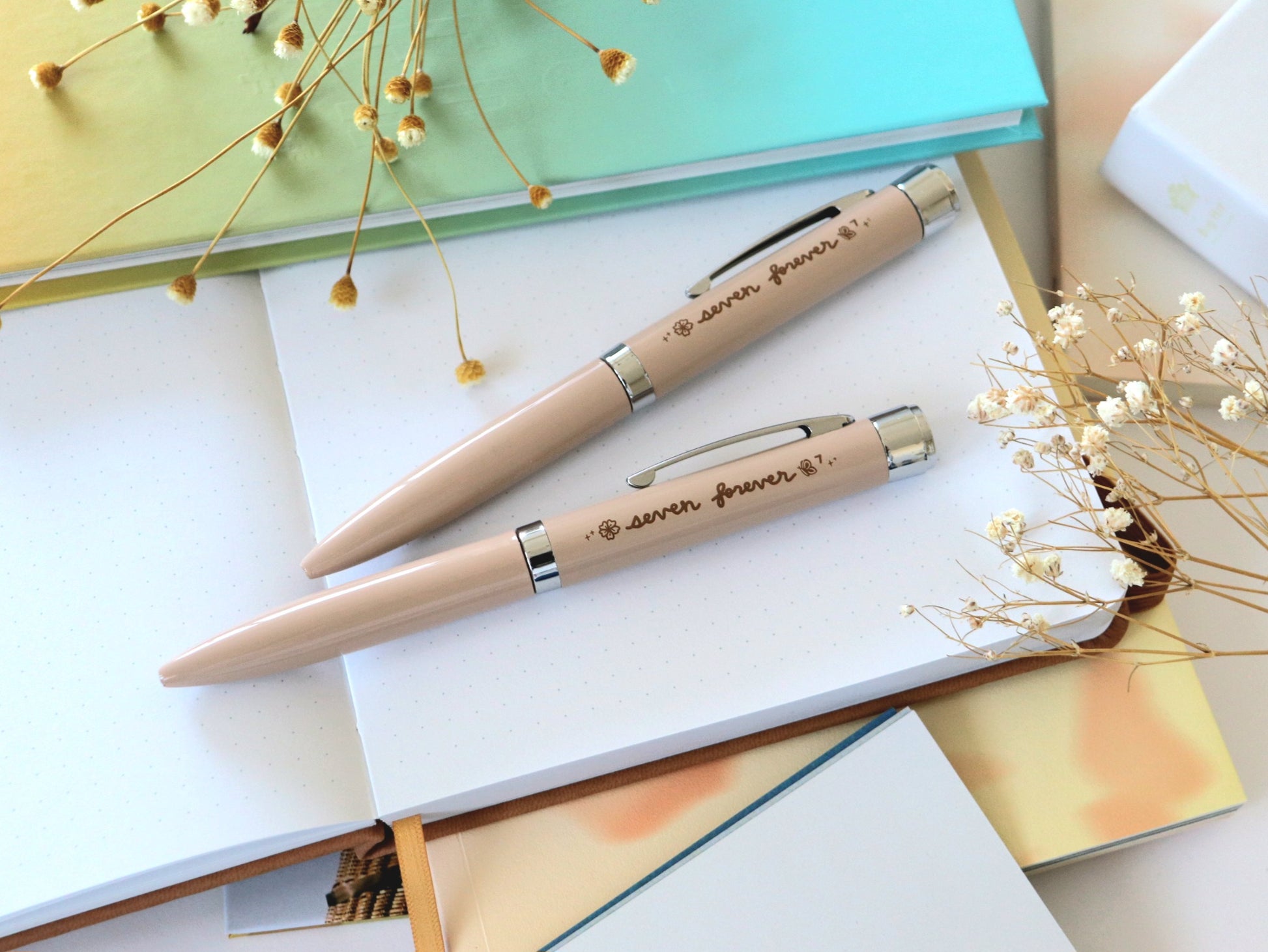 A special pen inspired by the HYYH era and Spring Day as we readily welcome the full return of Bangtan this year in 2025. This pen projects a precious recent OT7 selca.