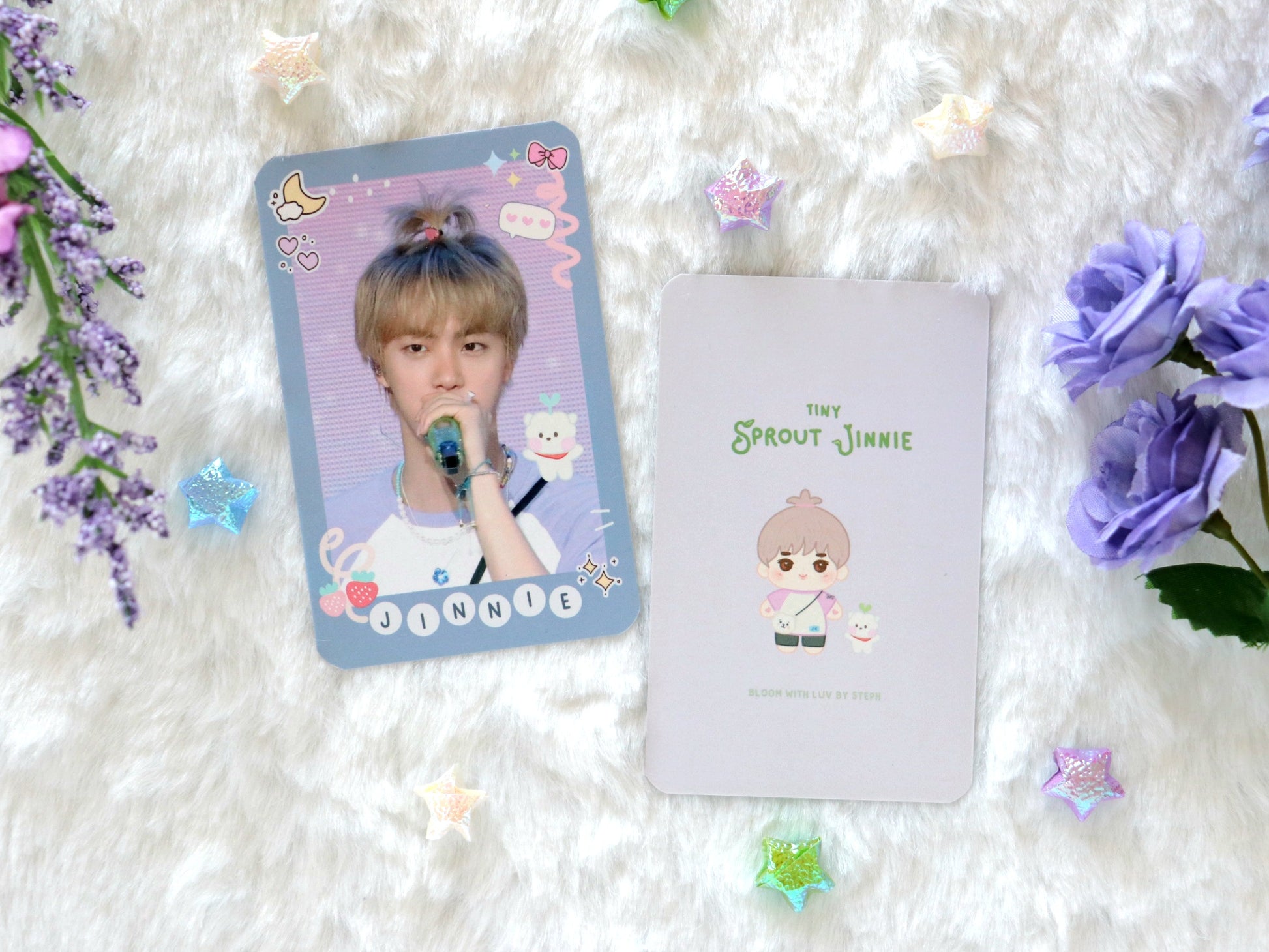 🌱 The front features a photo of Seokjin and the back features an illustration of Sprout Jinnie and RJ!