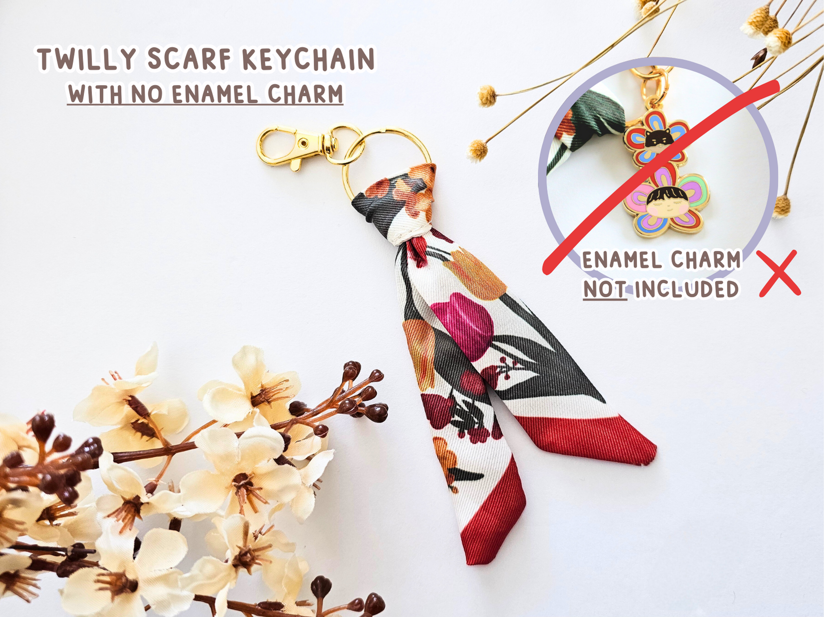 Choose between the twilly scarf with enamel Flower Buddies charm OR without the charm.