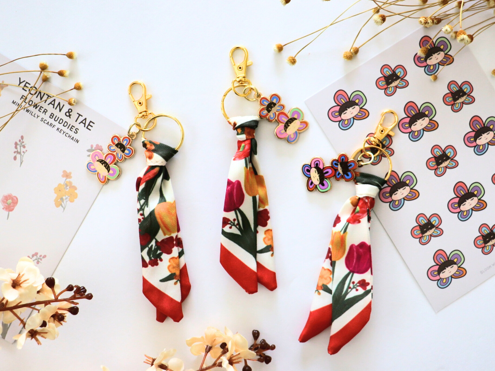 Yeontan and Taehyung Flower Buddies Mini Twilly Scarf Keychain