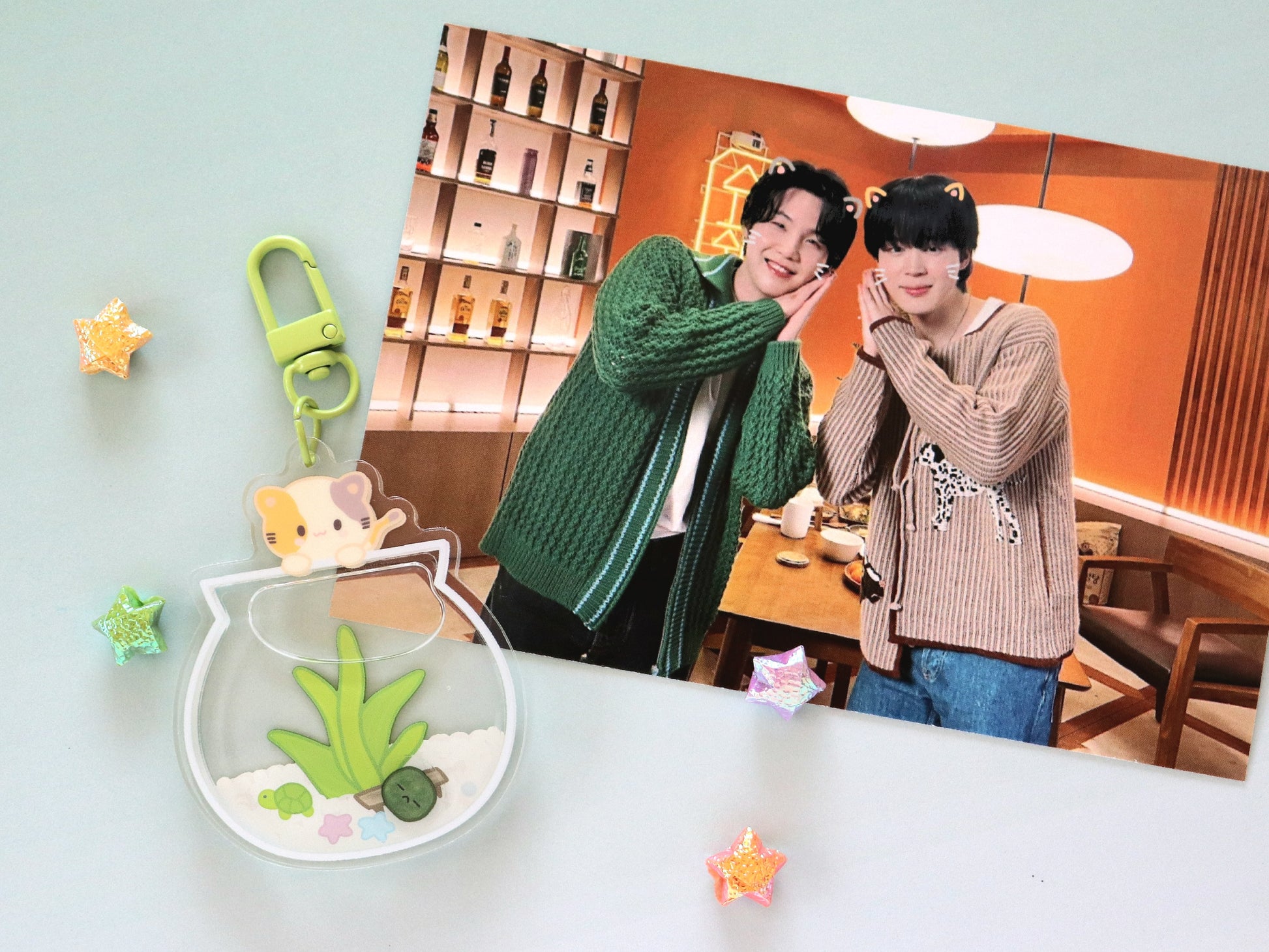 ⭐ The keychain backing card doubles as a Yoonmin postcard freebie!