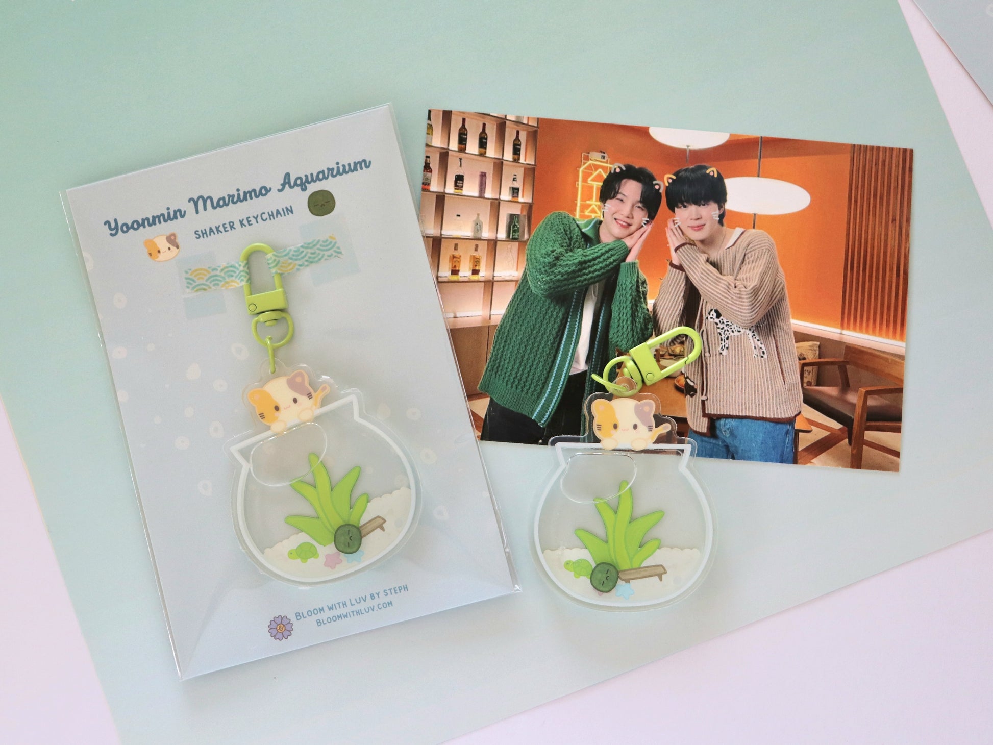 A special liquid shaker keychain inspired by Jimin's little aquarium and pet marimo he named "Suga".